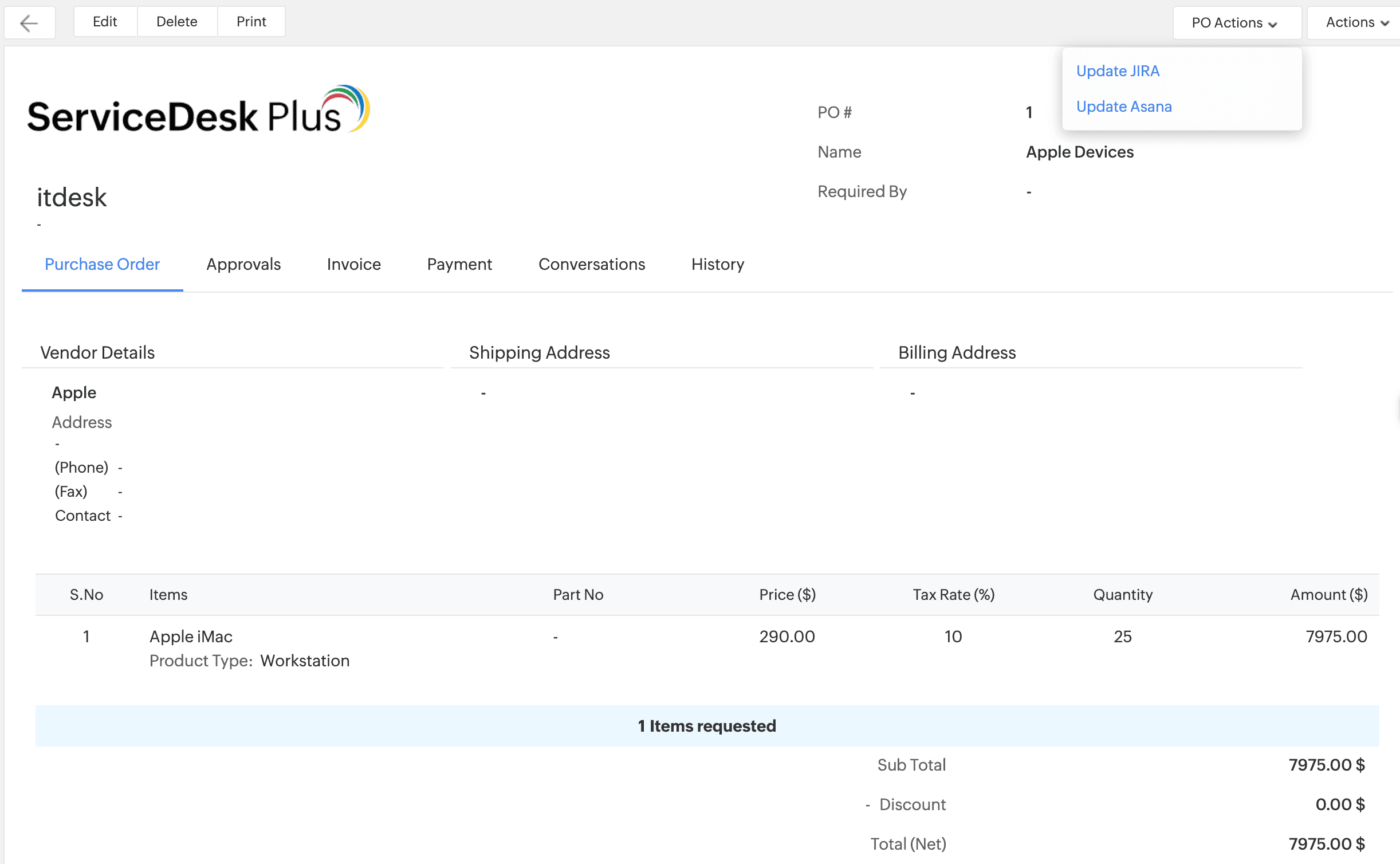 The ServiceDesk Plus On-Demand API allows for the integration of ServiceDesk Plus On-Demand with applications for network monitoring, intranet web applications and other third party SaaS applications. The API currently provides integration points to various help desk modules including Requests, Incidents, Users, Notes, Worklogs and a host of other Administrator functions like Site, Category, Status, Level, Priority, Mode, Impact, Urgency, Request Type and Request Templates. The ServiceDesk Plus On-Demand API supports XML and JSON formats and is programming language-neutral allowing developers to create applications in a language they are familiar with.