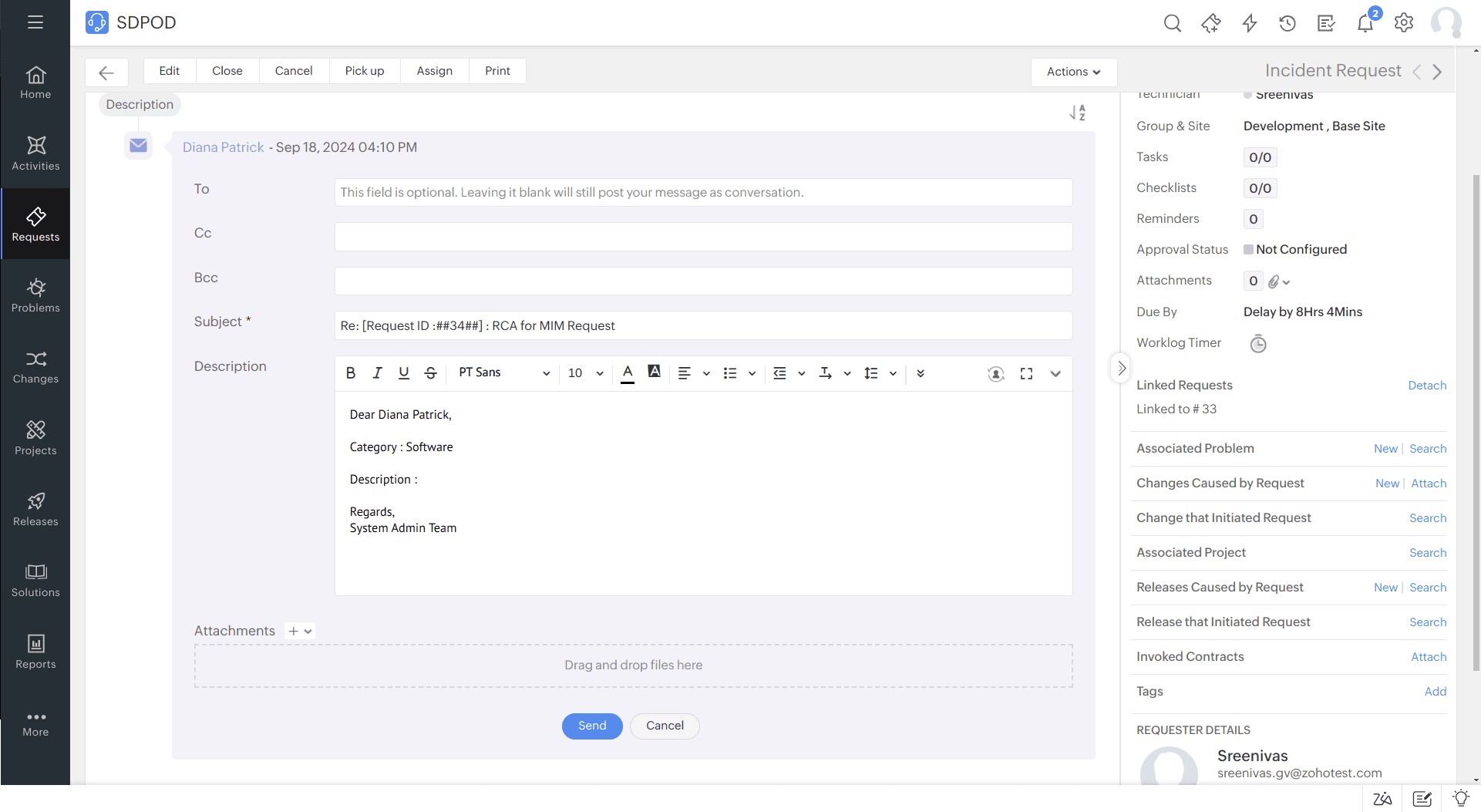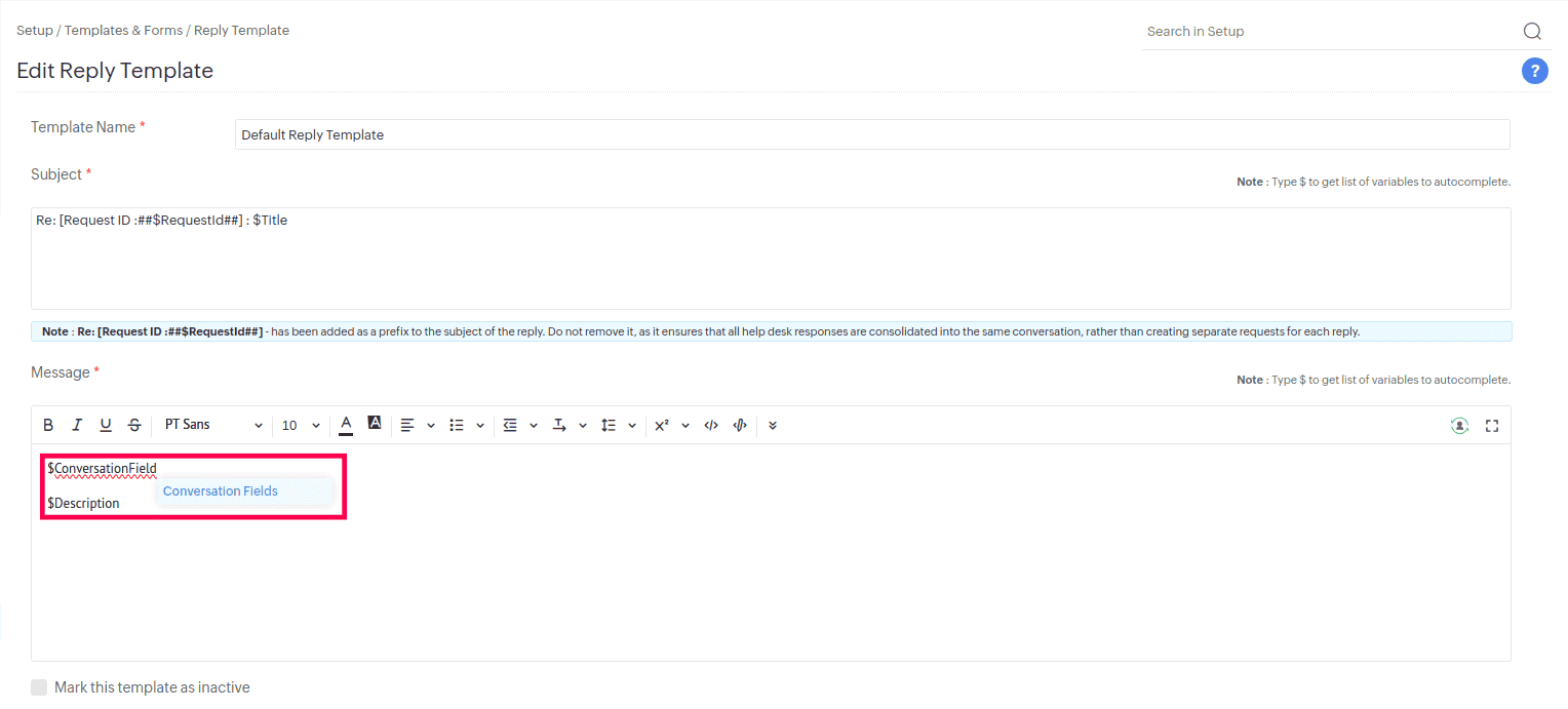 While replying to requests, technicians tend to type the same response repeatedly to quite a few requests of the same type. With Reply Template, Admin can create templates that can be used by technicians to send responses thus saving time and effort.