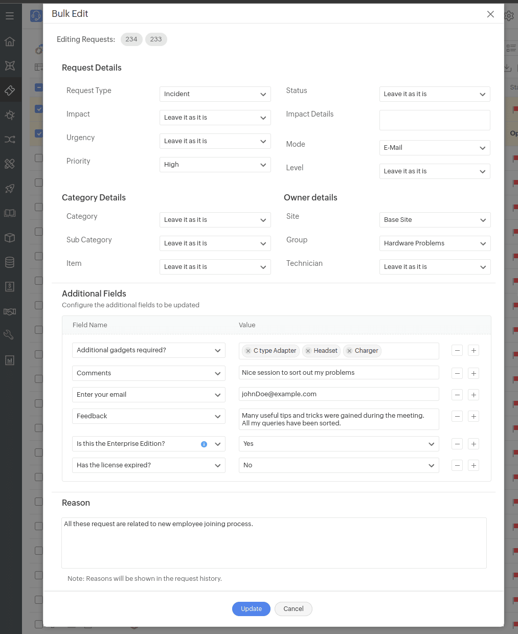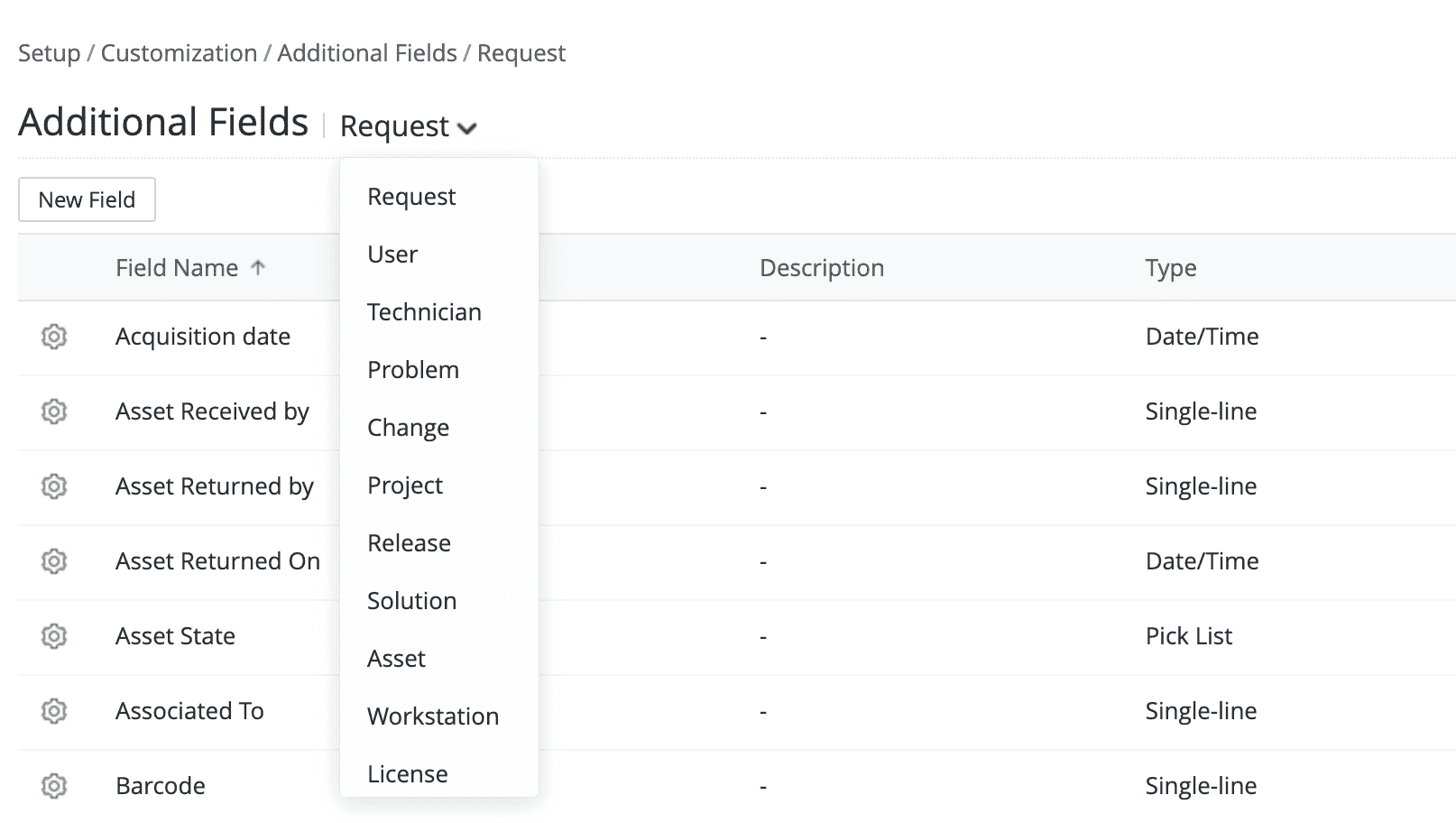 1) When selecting specific columns among the additional fields in the column chooser for display in 'Request List View', earlier, only 20 additional fields were listed. Now, it has been enhanced to include all the additional fields. Earlier, this was available to Technicians. This has now been extended to Requesters also.