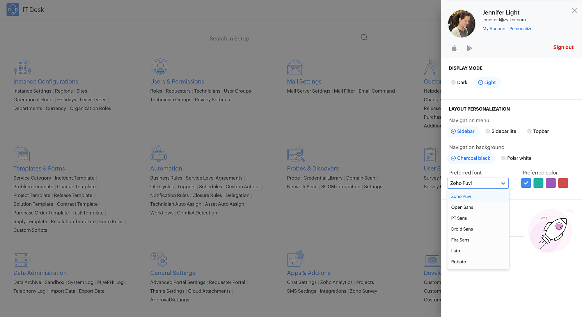 ServiceDesk Plus On-Demand is now available in 12 different languages: French, German, Spanish, Russian, Dutch, Norwegian, Portuguese, Swedish, Italian, Polish, Chinese and Taiwan Chinese. You can choose your language when you first log into the service or change it midway at the click of a button.
