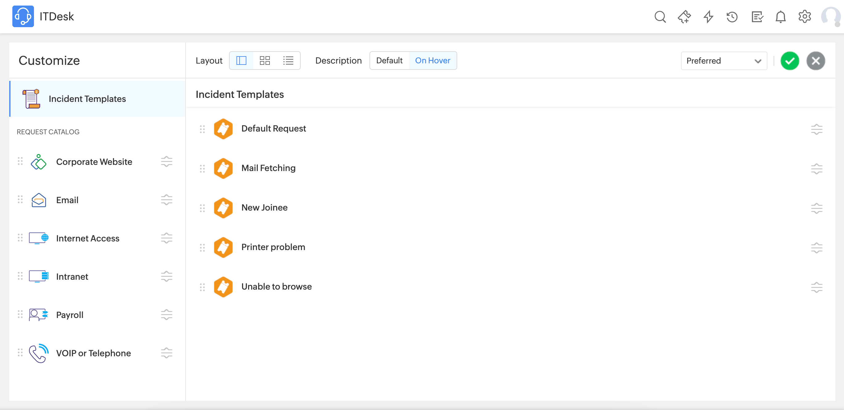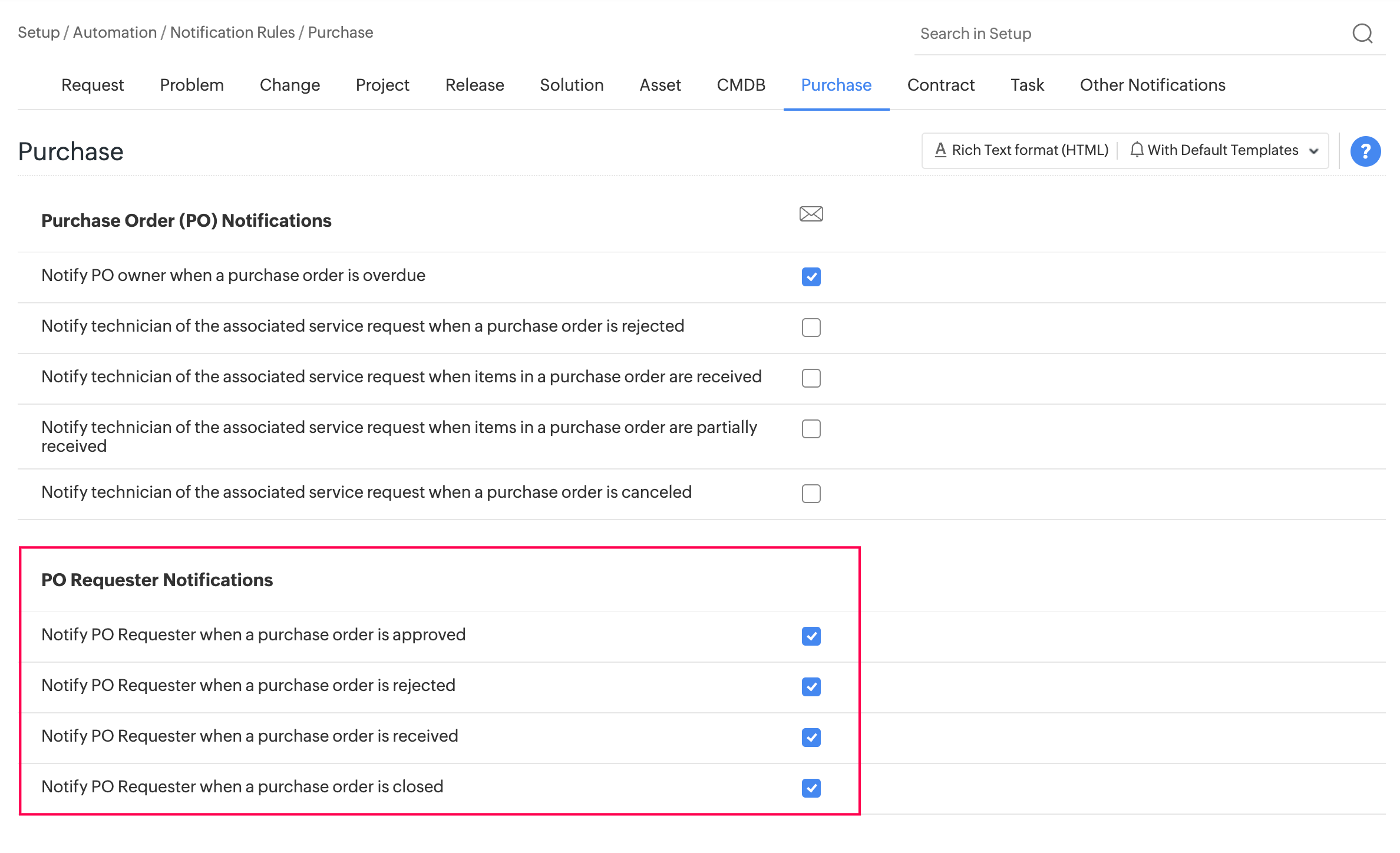 In the screen shown, ‘My Template’ a Request Template has been made the default template and hence is indicated by a small icon.