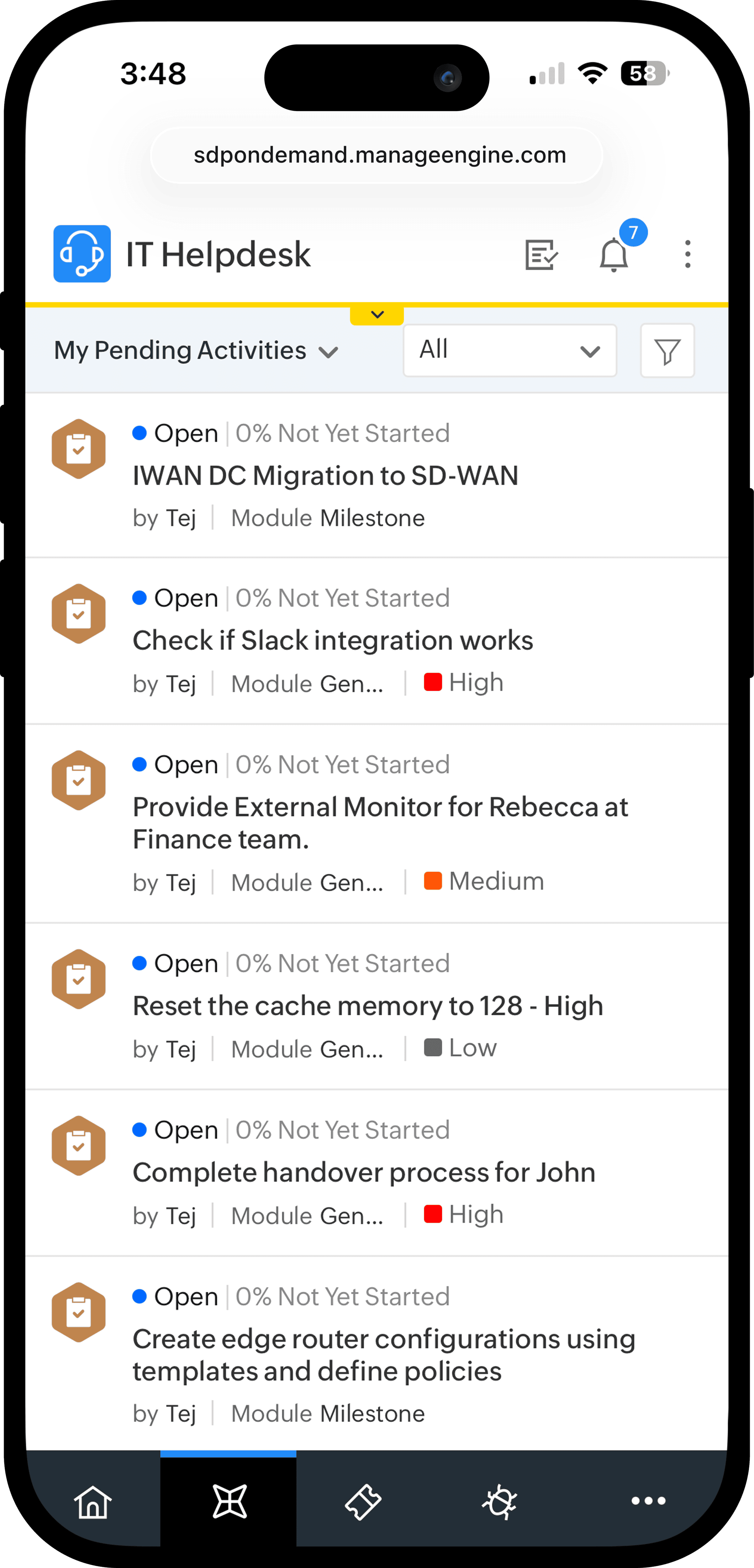 1) Mobile Interface for ServiceDesk Plus On-Demand