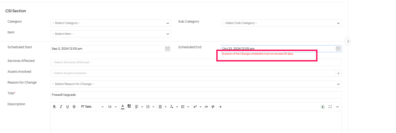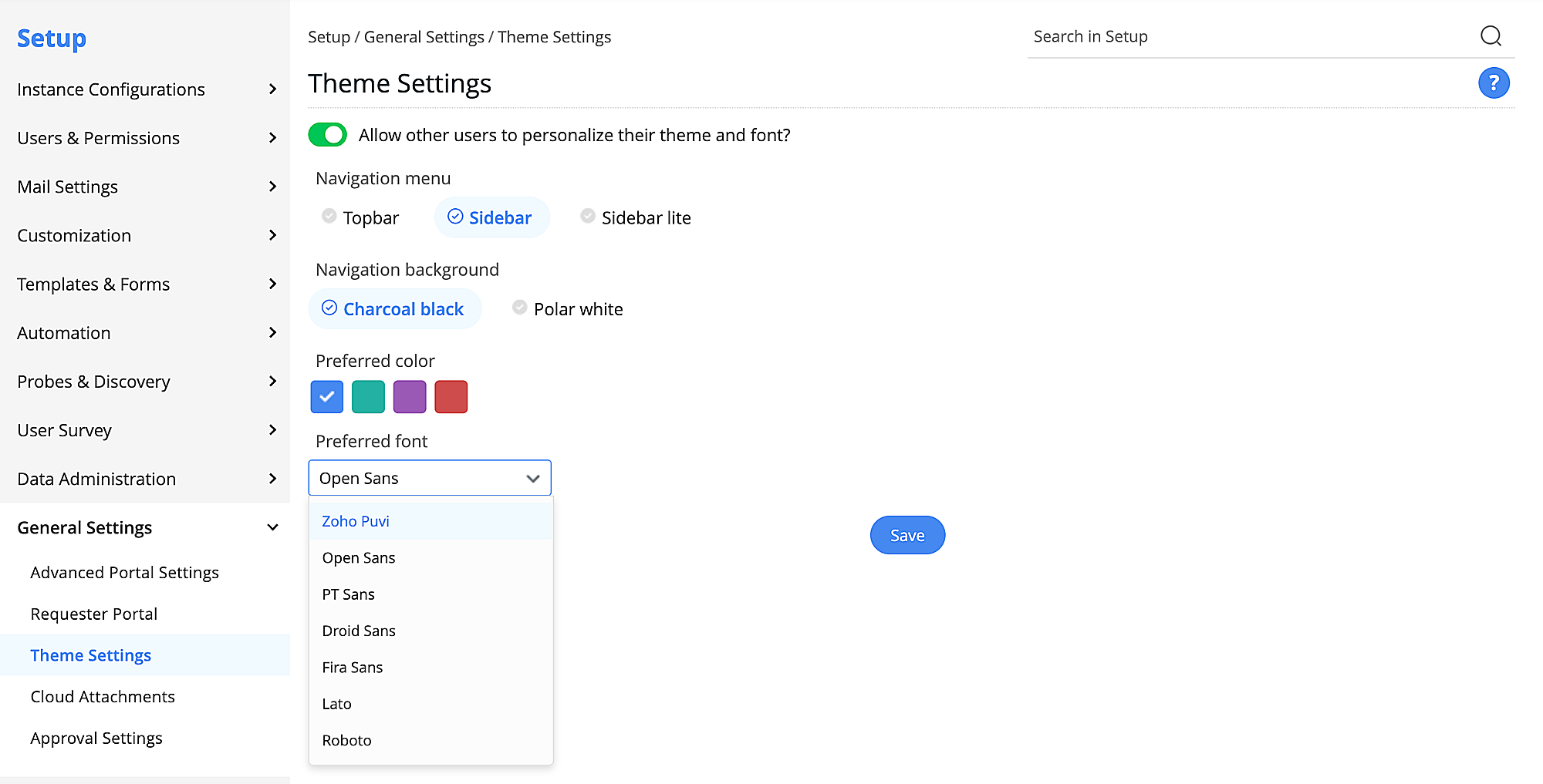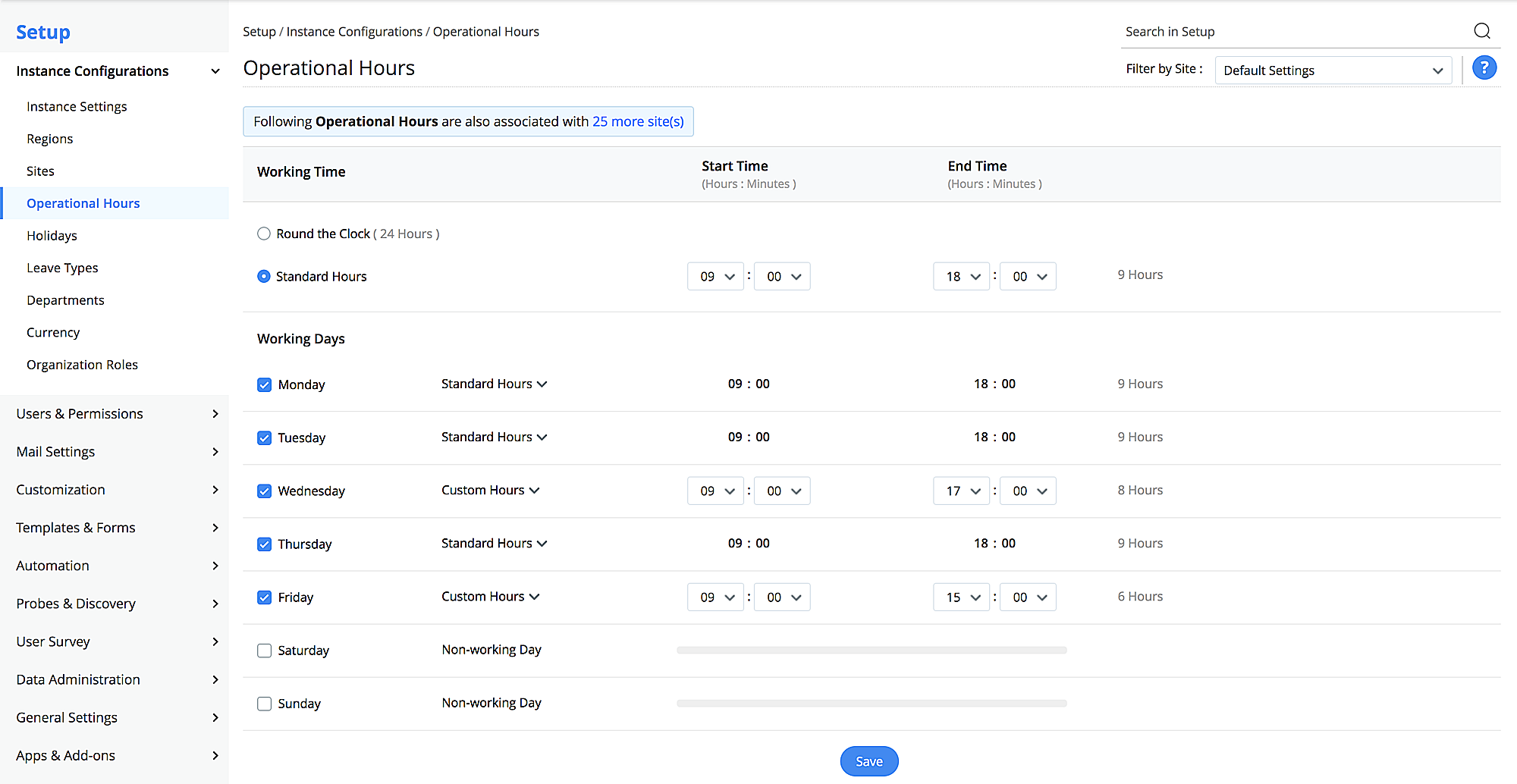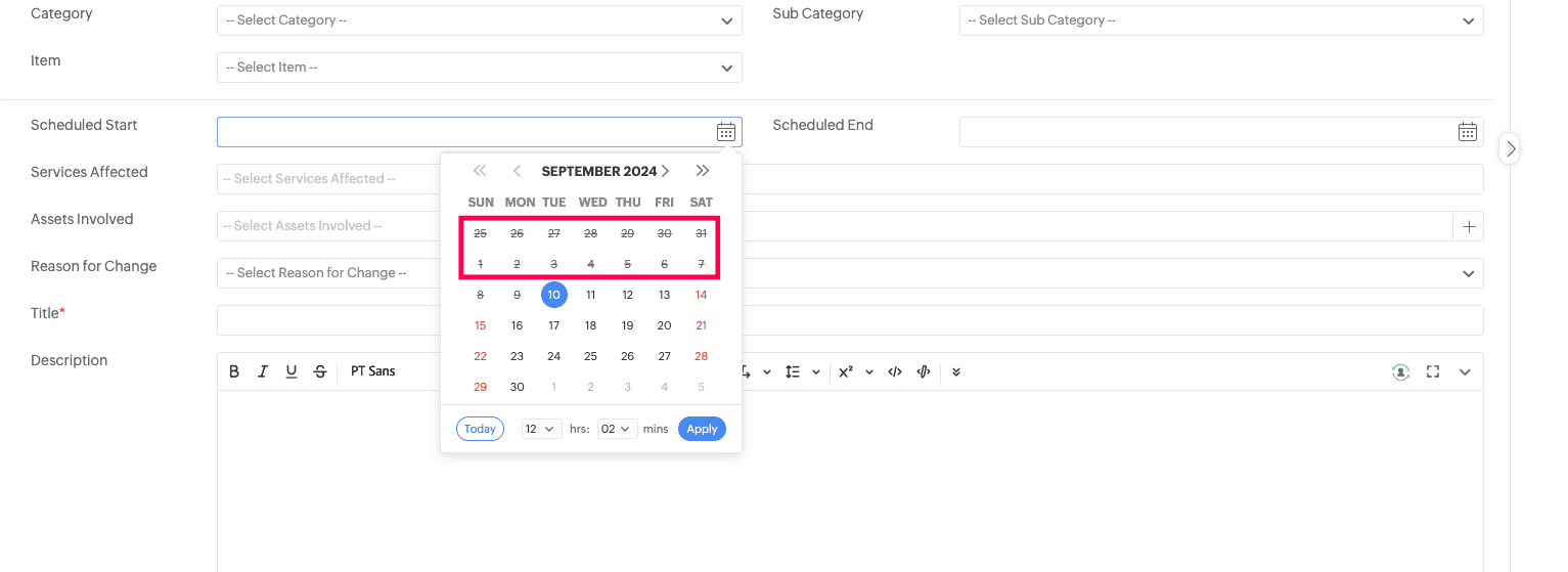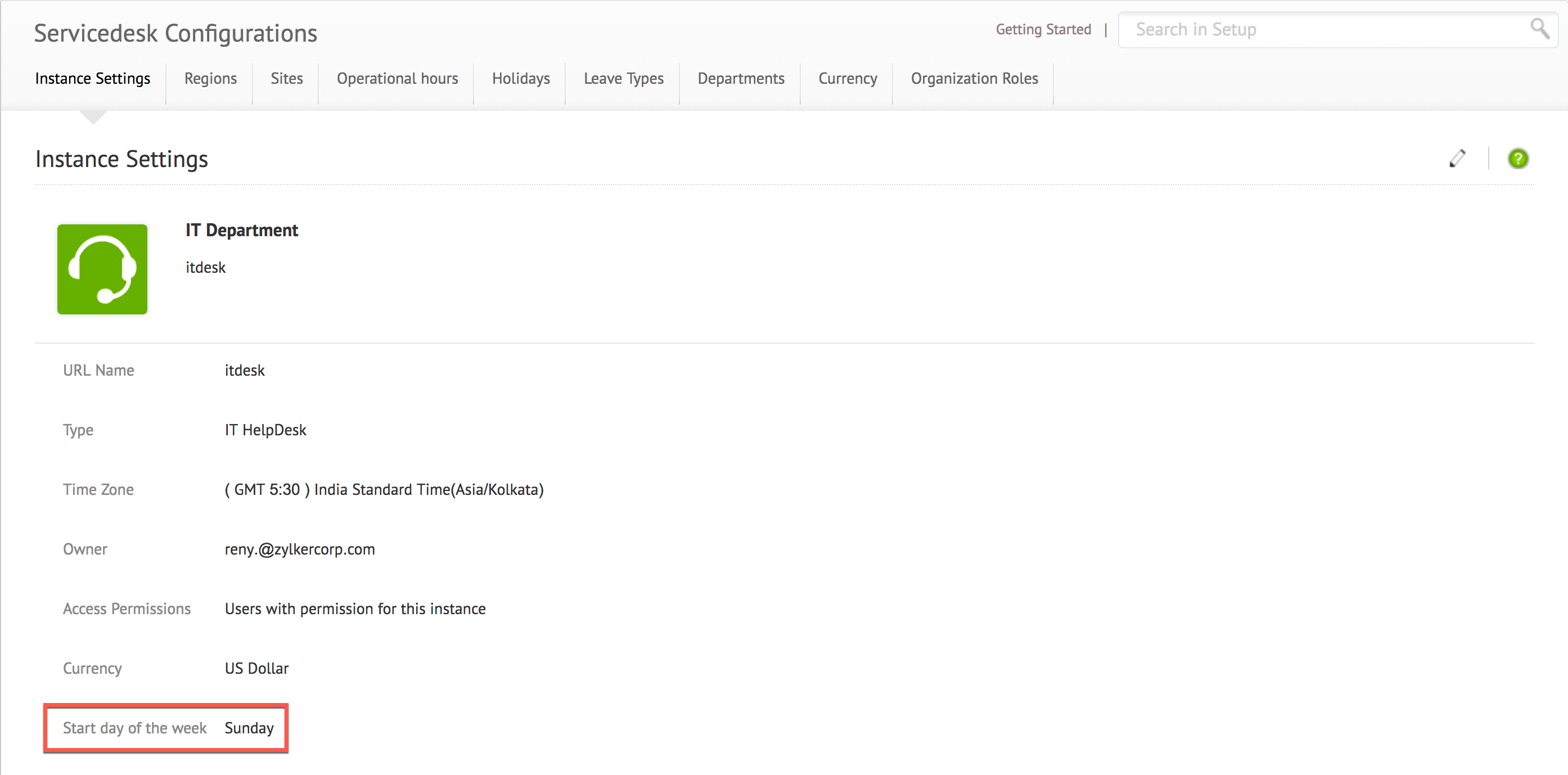 You can now customize the calendar view in the Self Service Portal Settings by selecting the start day of the week from a drop-down. The selected day will be considered the starting day of the week in all the calendar views.