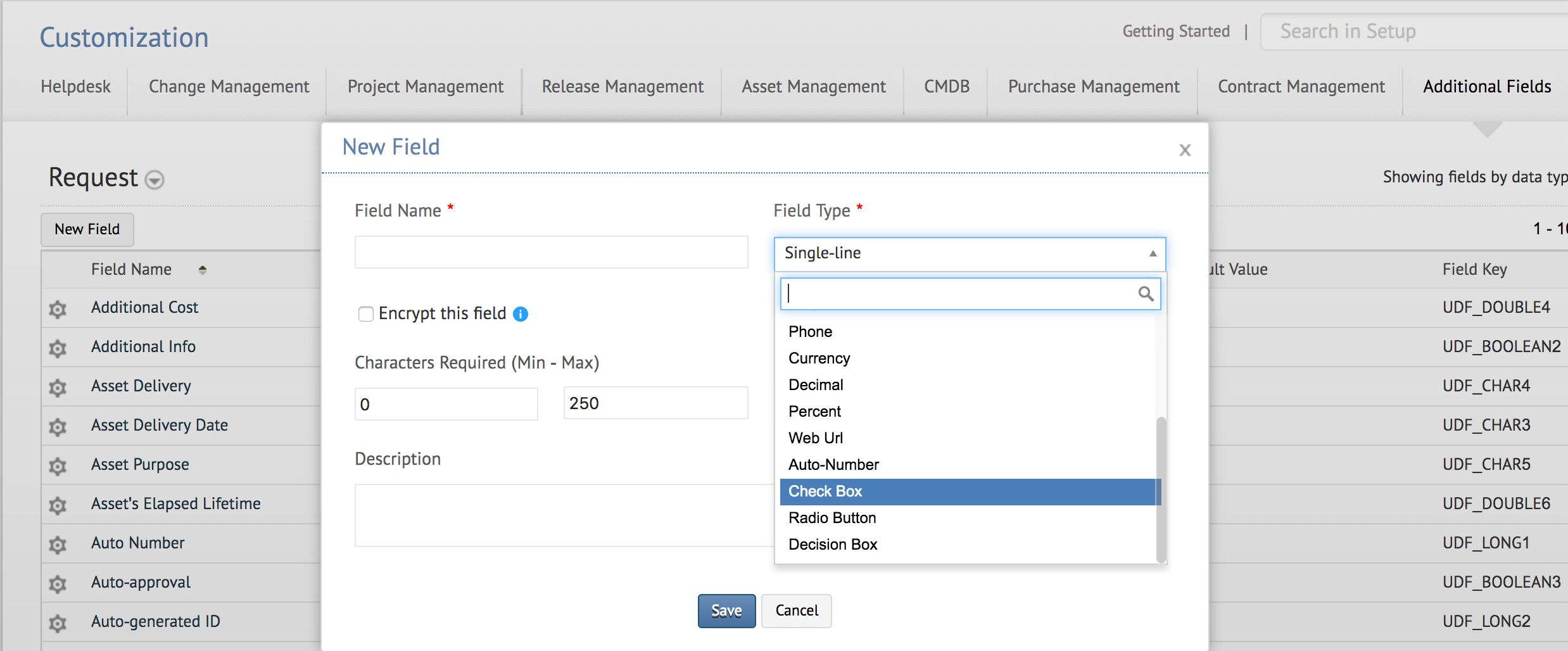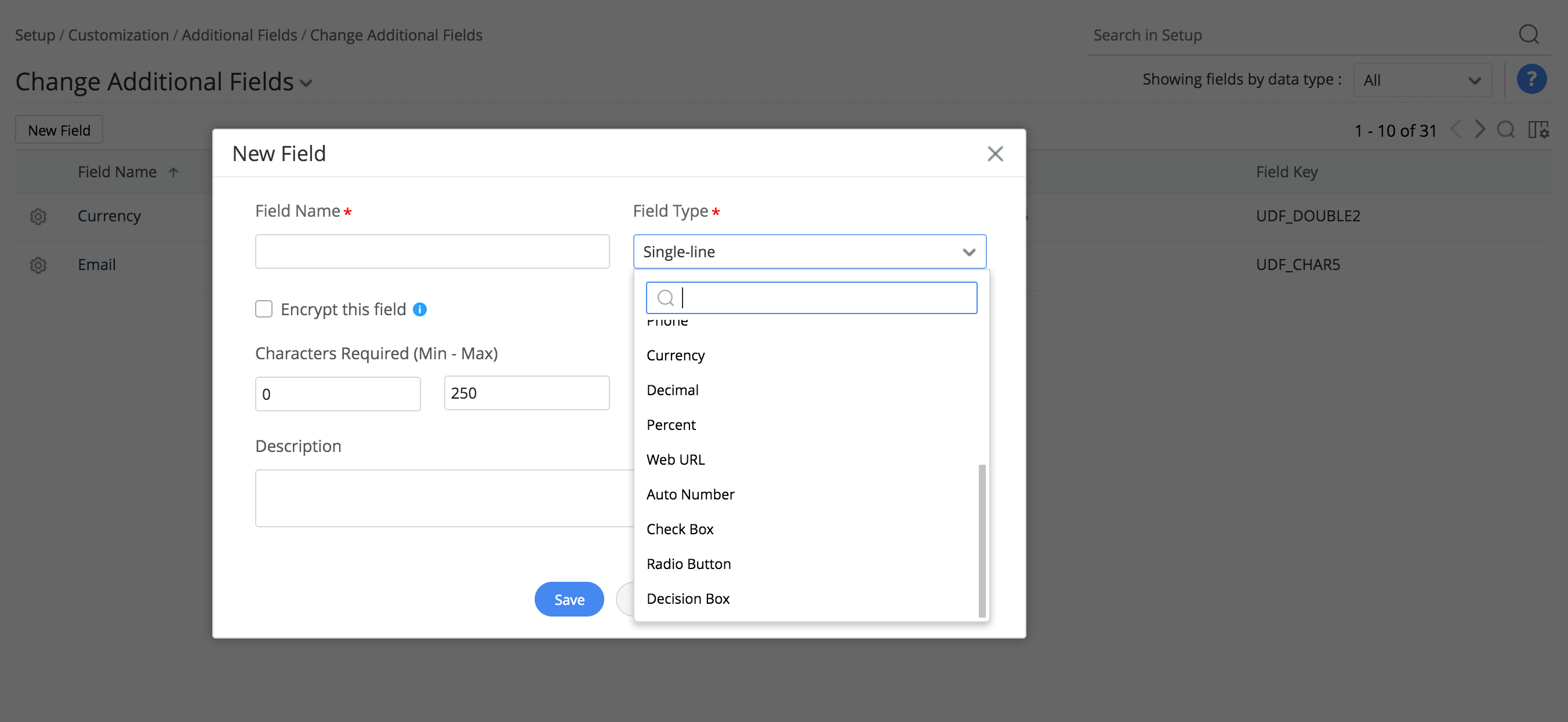 Note: The existing additional fields with system-generated Field Keys (e.g., udf_char1, udf_char2, etc.) will remain unchanged.