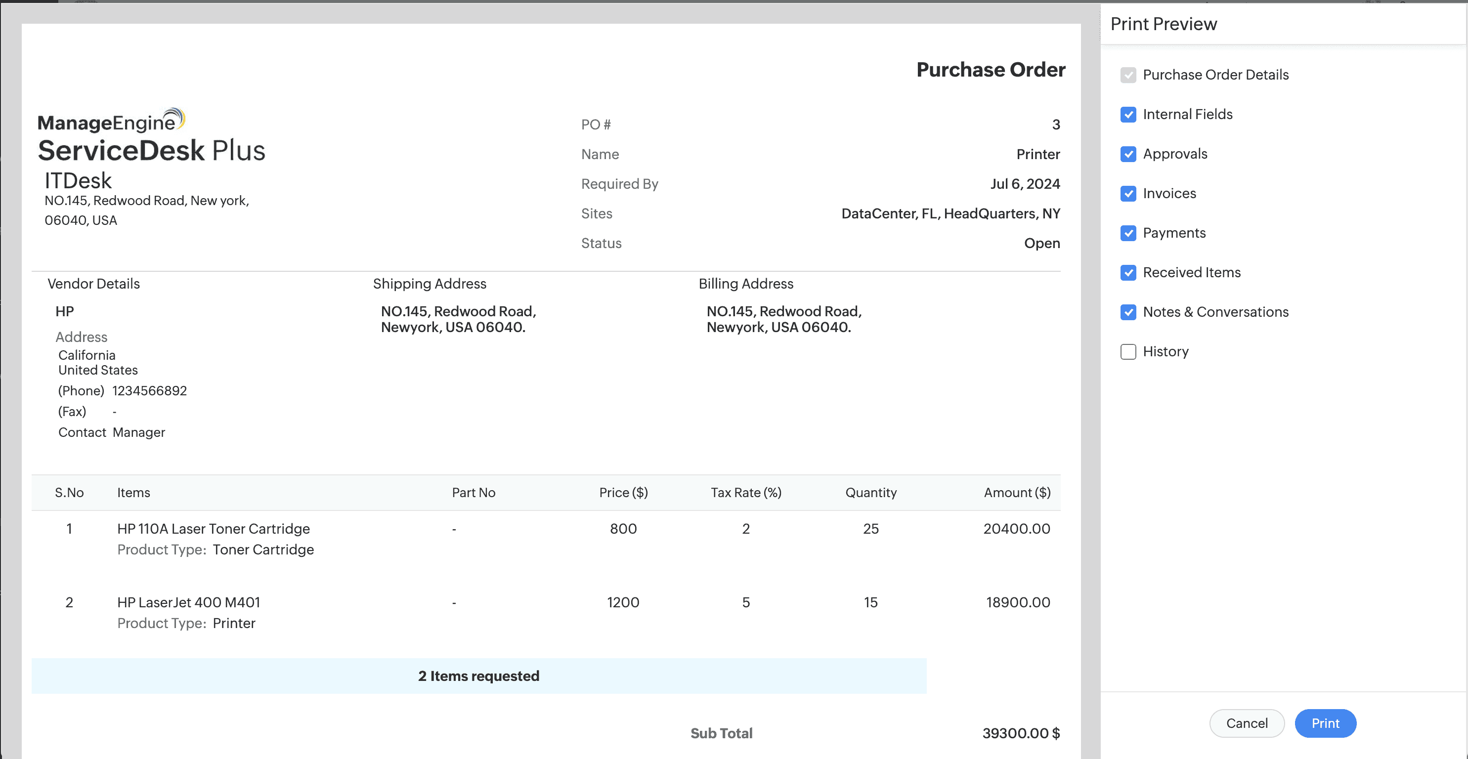 2) The 'Print View' of problems, changes and requests now provides the option to select only specific items for printing. For example, when printing a change, you can just print the Work Log and History alone.