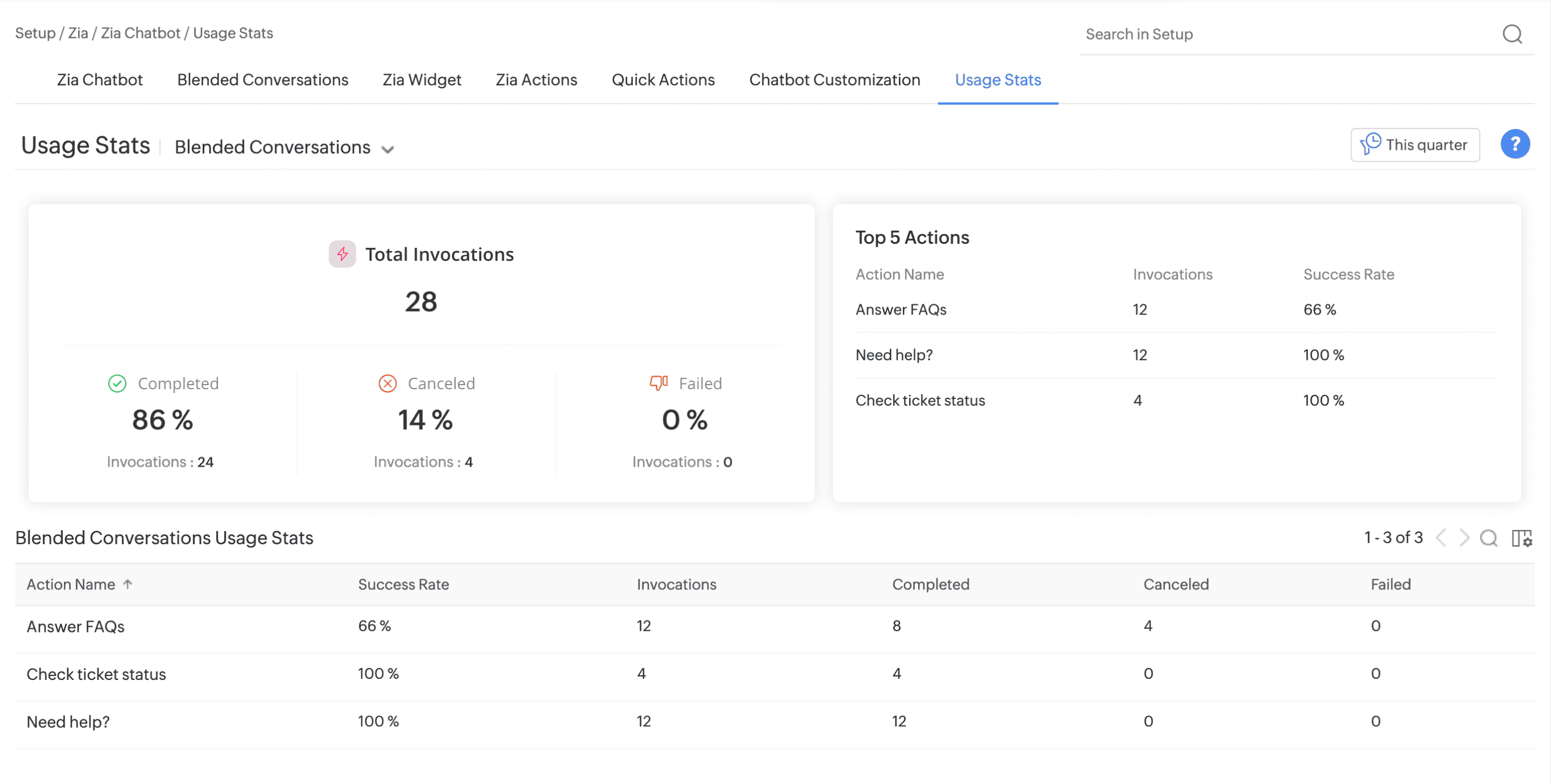 You can also monitor usage trends of the checklist generator in the Zia Dashboard.