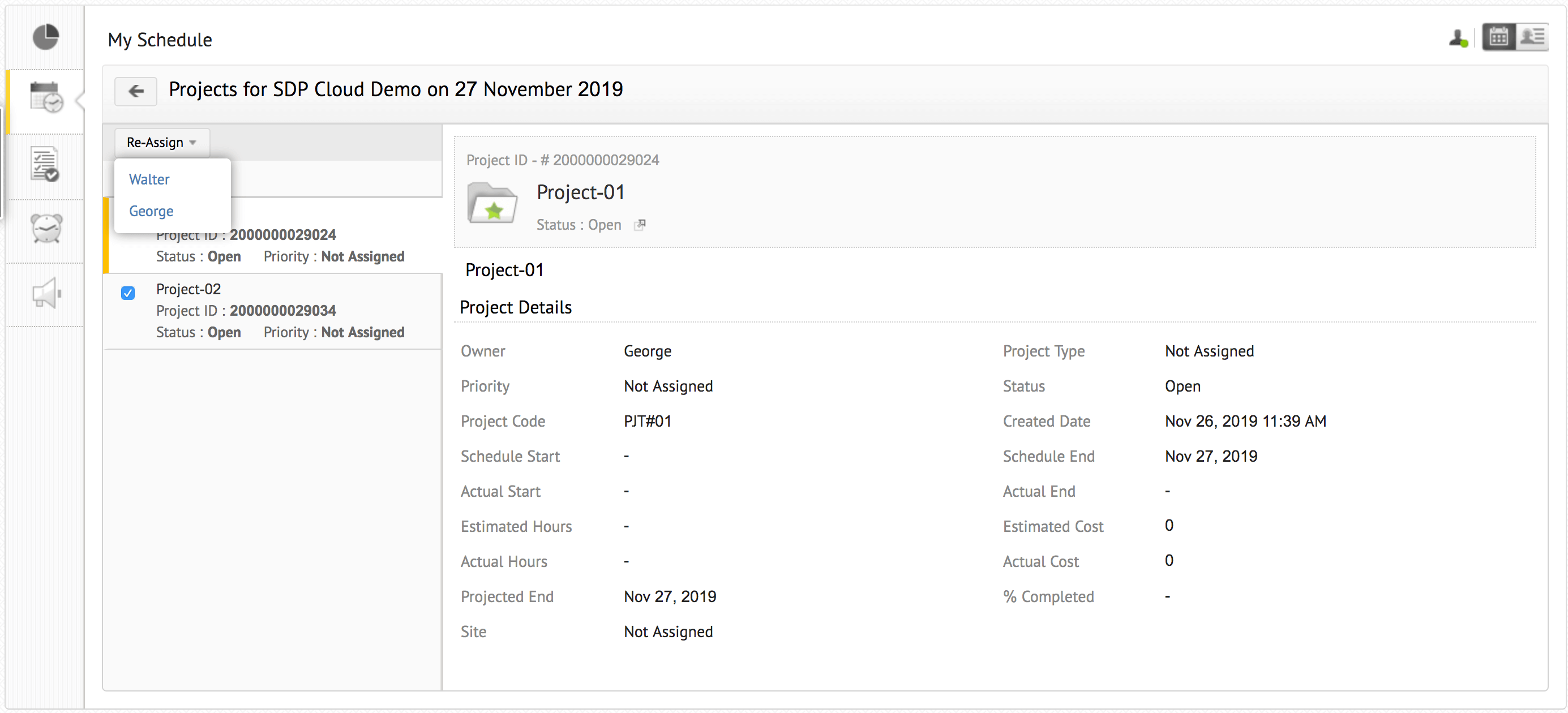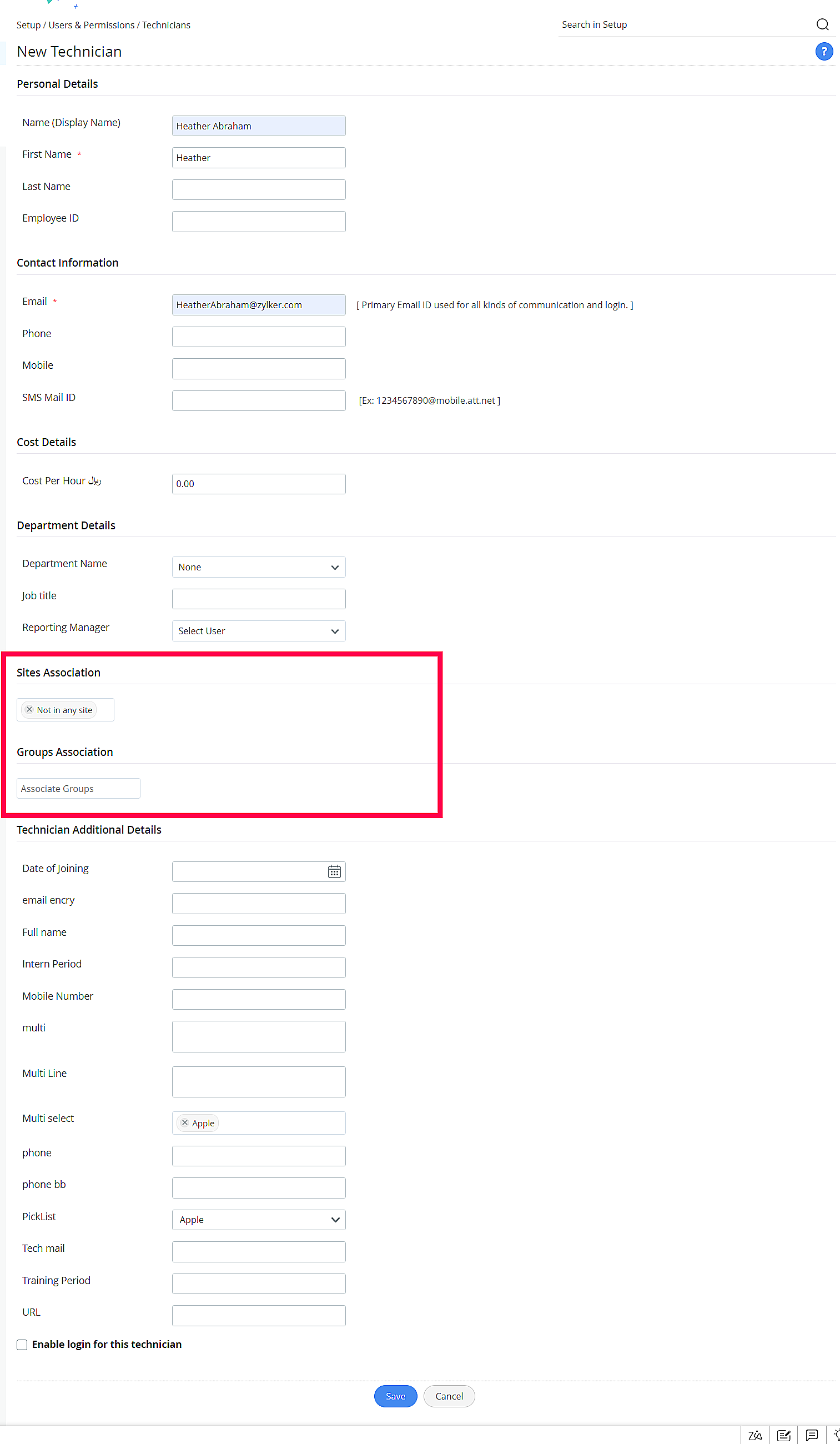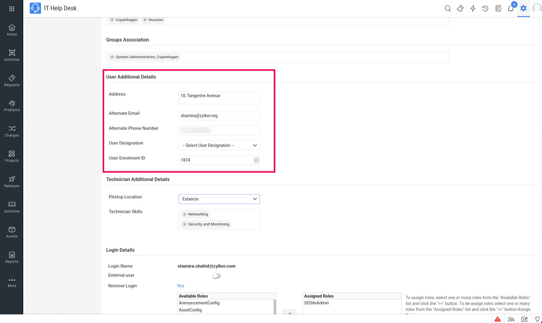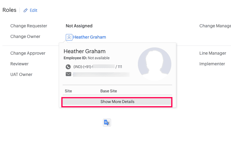 Within the Technician Availability Chart, SDAdmins, SDCoordinators, and SDSiteAdmins can now view technician details, such as user name, profile picture, email address, employee ID, job designation, and contact numbers.