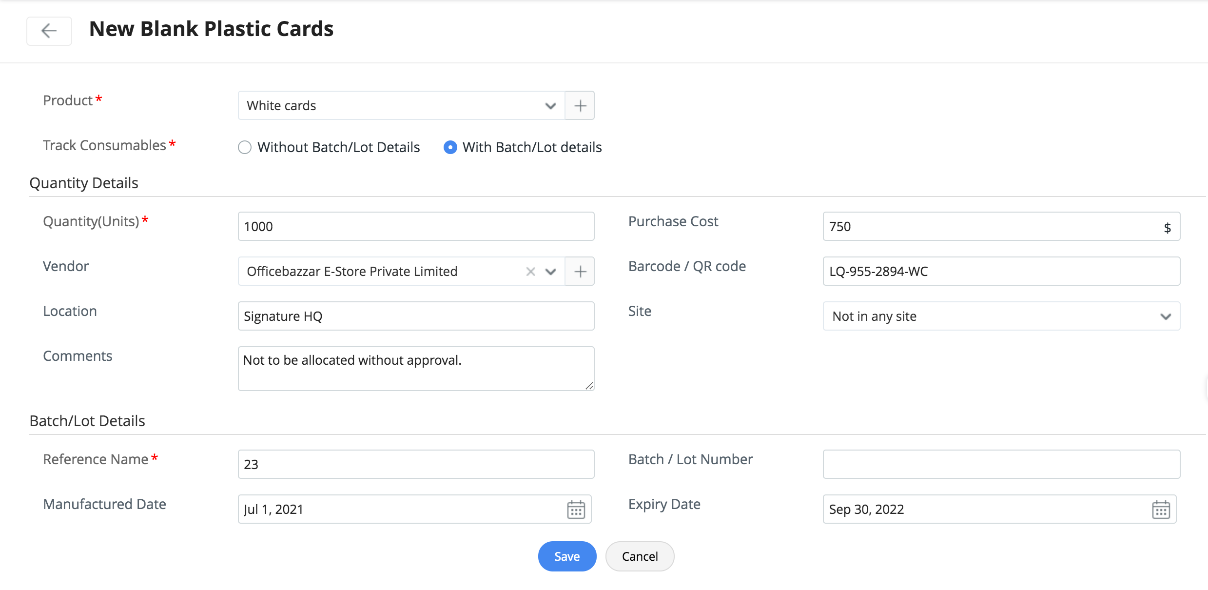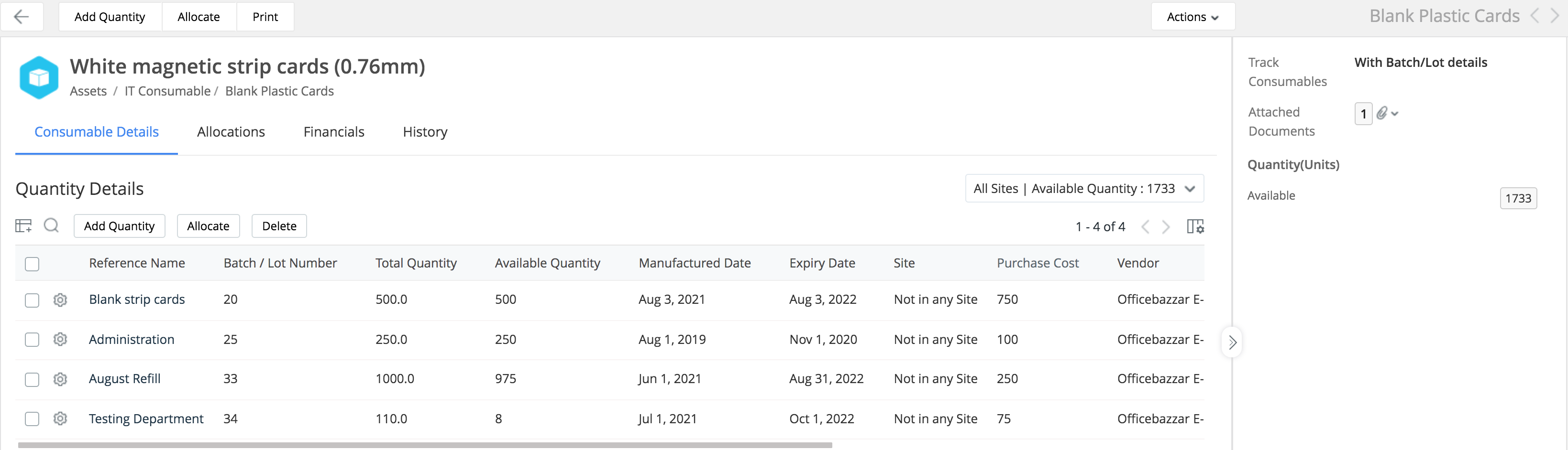 An internal error occurs when a technician with a site-restricted role allocates consumables tracked by batch/lot details.