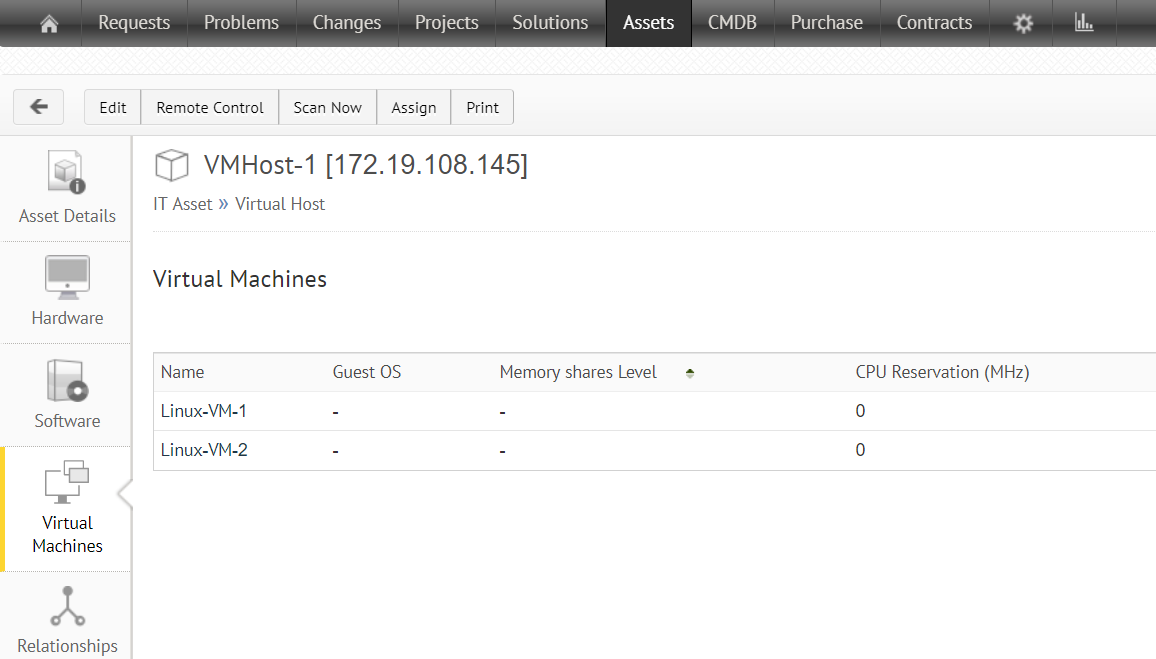 The probe for asset discovery so far could scan workstations across Windows, Linux and Solaris environments. The probe now has capability to automatically discover assets like printers, routers, switches, etc. using SNMP.
