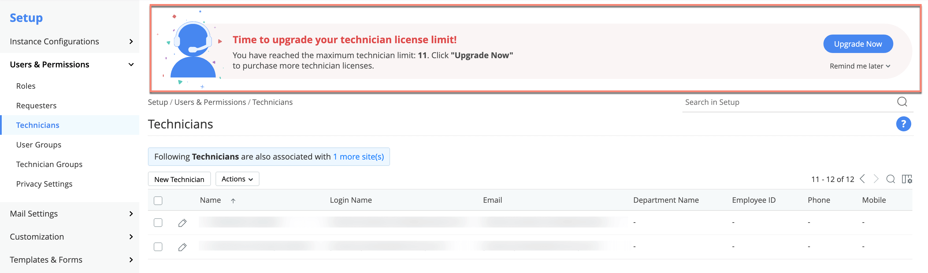 You can now view the list of technicians who are configured for a given role. This is available in Admin » Roles section.