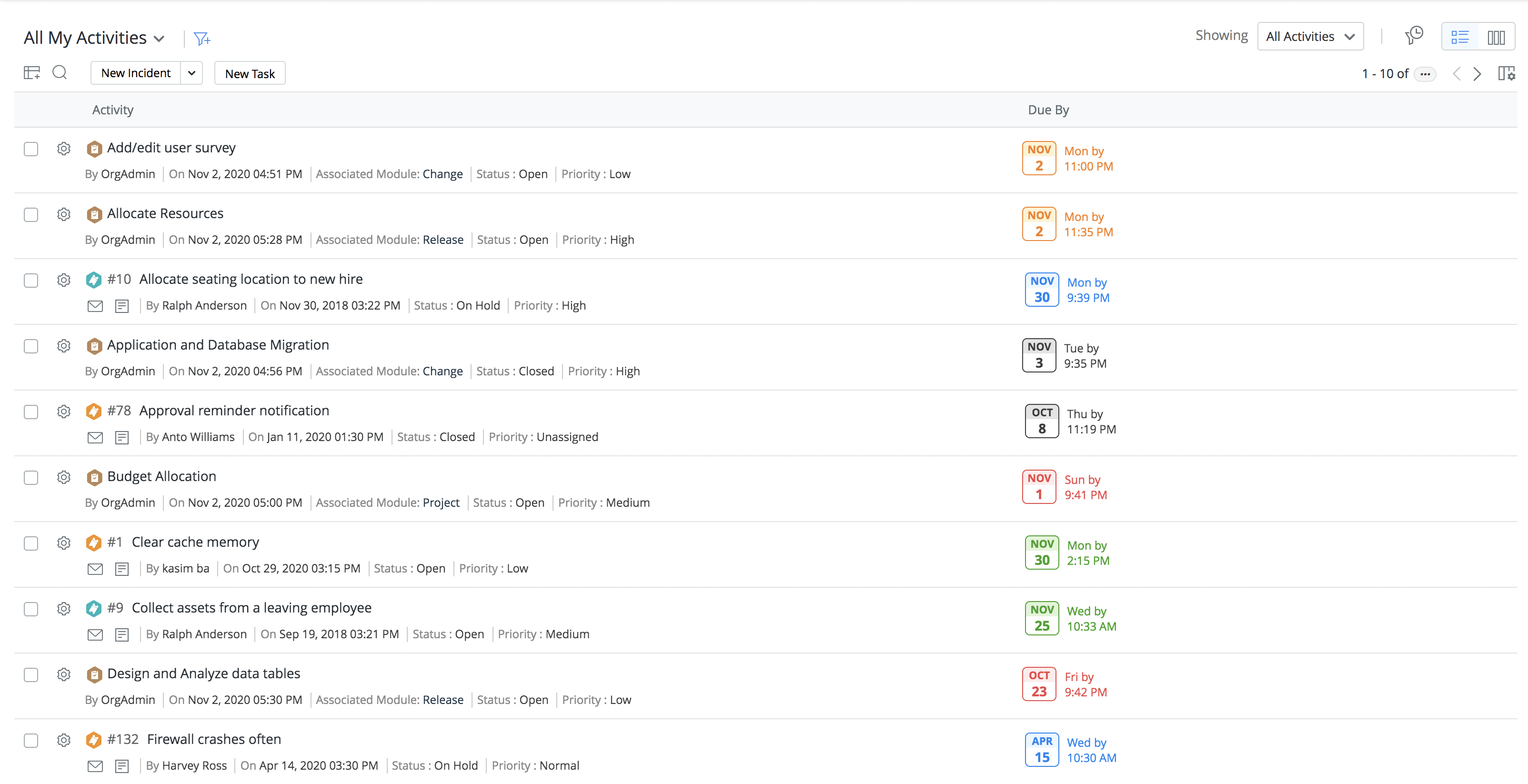 Displays a list of all records across different stages, priorities, and workflows in a module. Use filters to list specific records. |