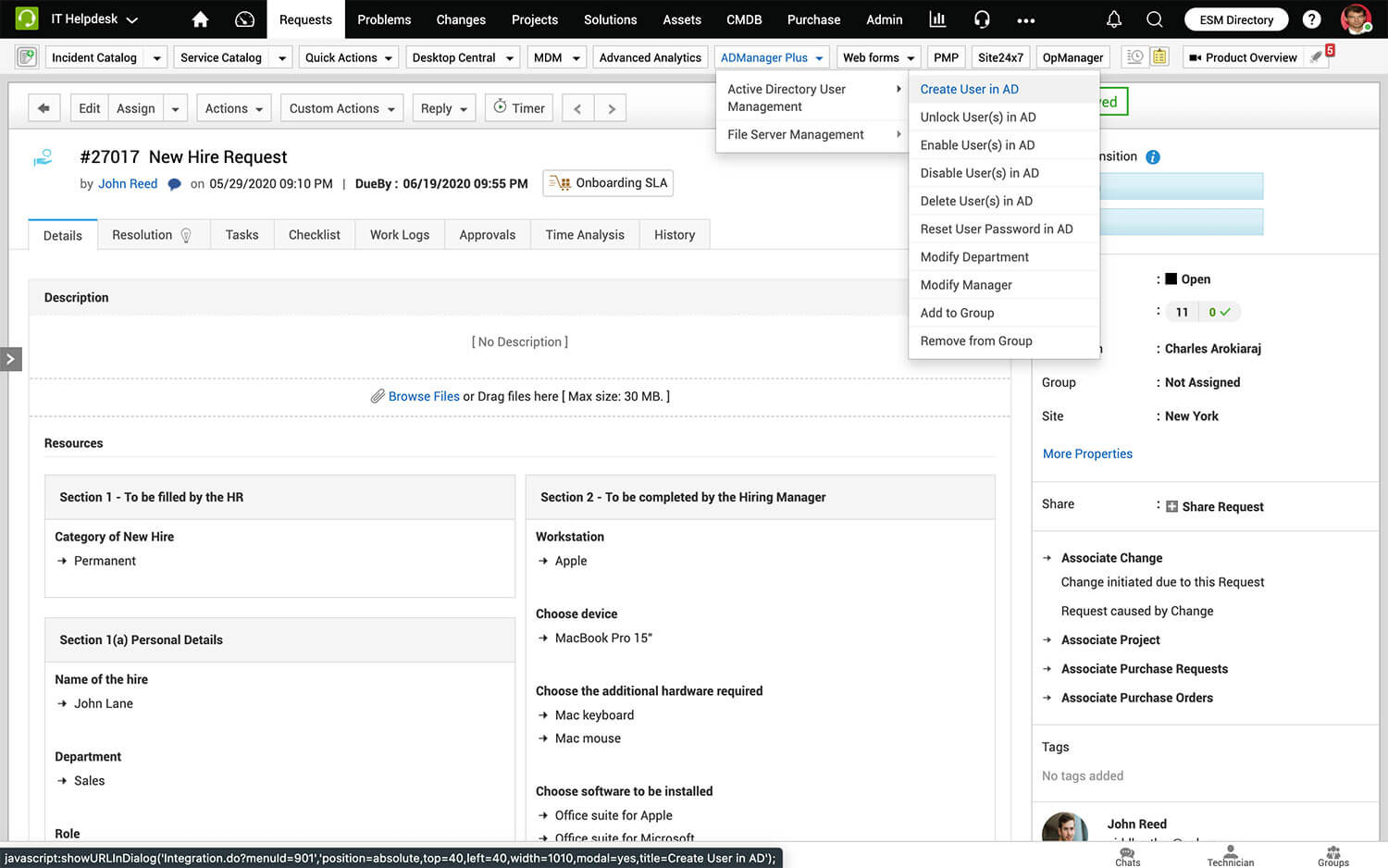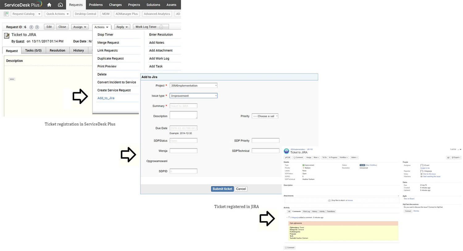 Deploy patches across devices right from your service desk with the Patch Manager Plus integration.