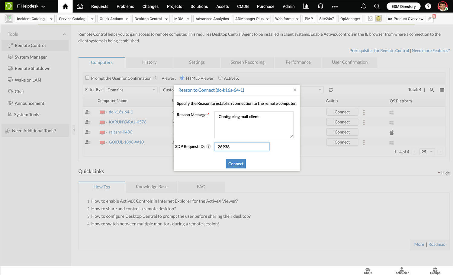 Control peripheral devices by launching remote sessions from your service desk by integrating with Device Control Plus.