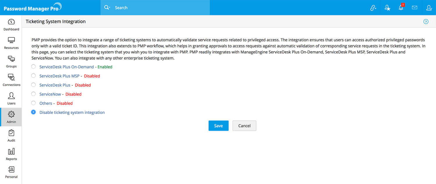 Grant privileged access to technicians through ticket validation with Access Manager Plus.