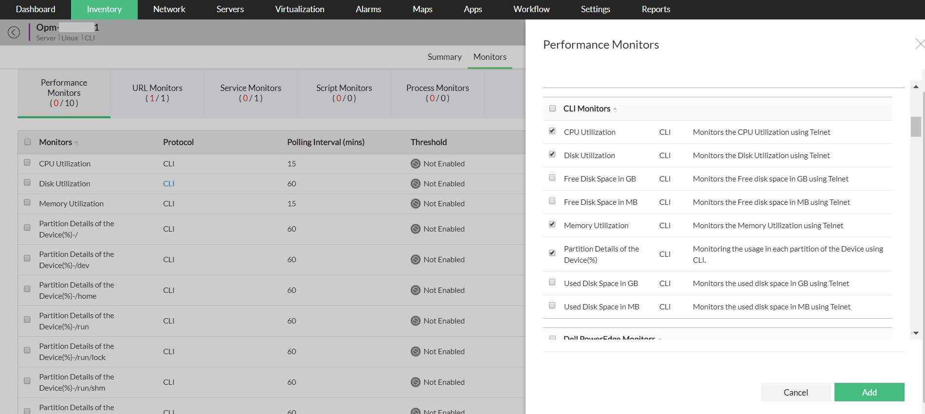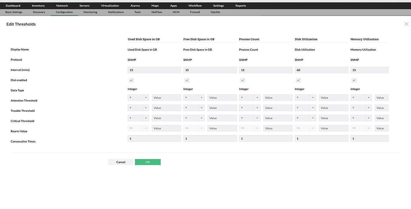 - Definieren Sie mit WMI-Skripten, CLI-Befehlen oder durch die Abfrage relevanter SNMP-Variablen weitere Überwachungen (mit der Möglichkeit, Ausdrücke anzuwenden) für diese Ressourcen.