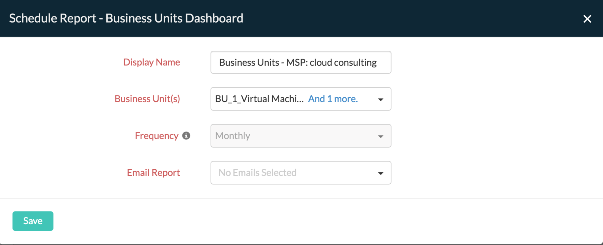 Billing reports provide visibility into the current cloud cost trends of your BU, and slice-and-dice reporting facilitates effective tracking of costs. With cost reporting, you can schedule reports monthly, quarterly, or yearly for each BU.