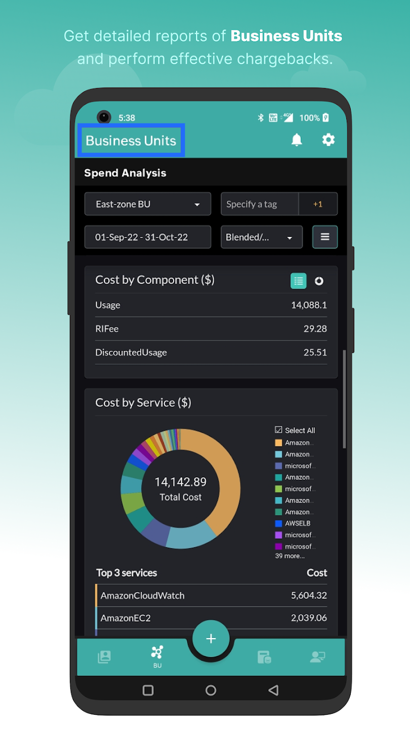 View and analyze your cost accounts on the go on theBusiness Units tab. Tap the applicable account to view the Spend Analysis report. Tap Schedule Report to schedule reports of your Business Unit accounts. You can also edit your account details by tapping the Edit option. To delete your account, tap Delete.