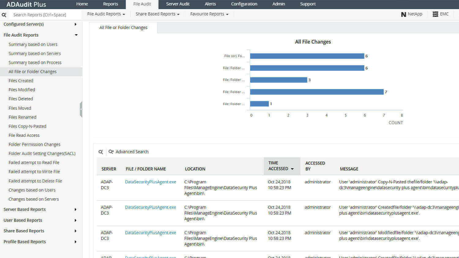 Dank der intuitiven Berichte, sofortigen Warnungen und Änderungsüberwachung in Echtzeit können Sie interne Bedrohungen mit ADAudit Plus schnell erkennen und entsprechend reagieren.