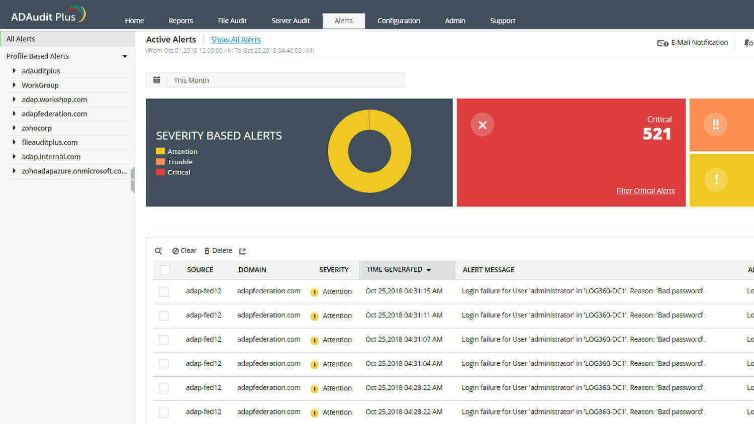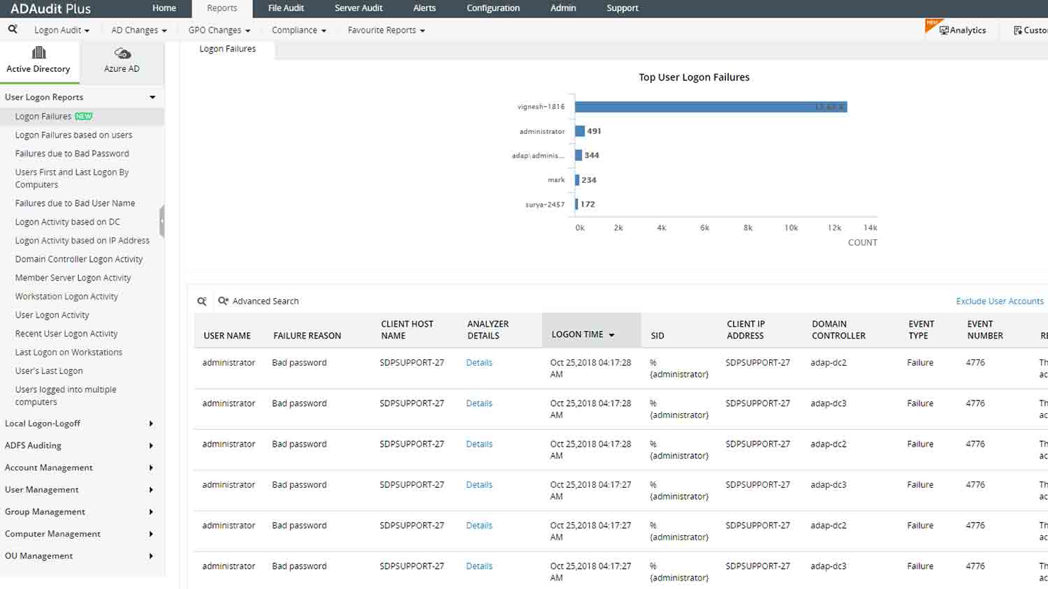 Schützen Sie Ihre Active-Directory-Umgebung mit ADAudit Plus und profitieren Sie von besseren Einsichten in Ihre Domänen – mit Echtzeitwarnungen und umfassender Änderungsüberwachung.