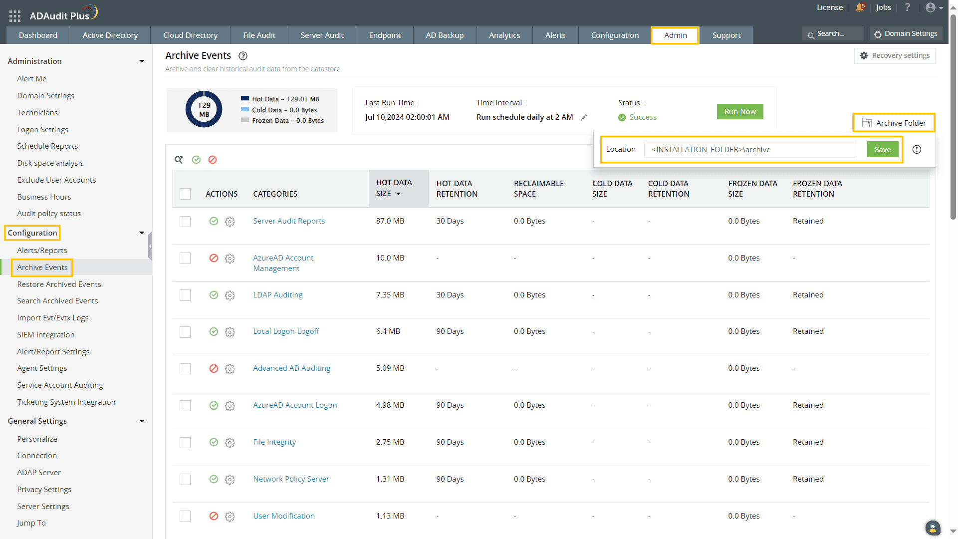 Archiveinstellungen in ADAudit Plus konfigurieren
