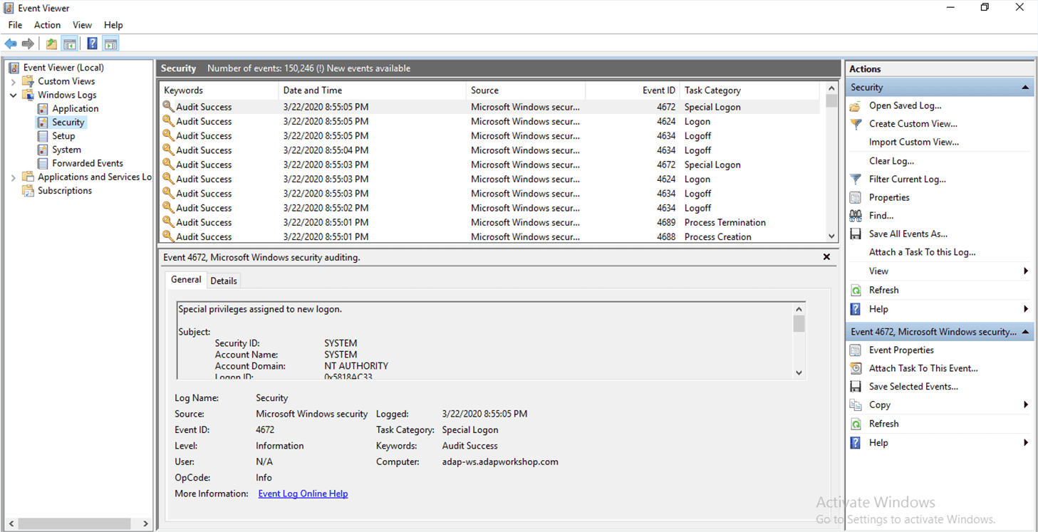 Schritte zum Anzeigen dieser Ereignisse in der Ereignisanzeige (Event Viewer):