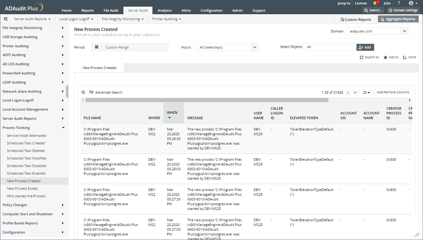 Schritte zur Überwachung der Prozessverfolgung mit ManageEngine ADAudit Plus