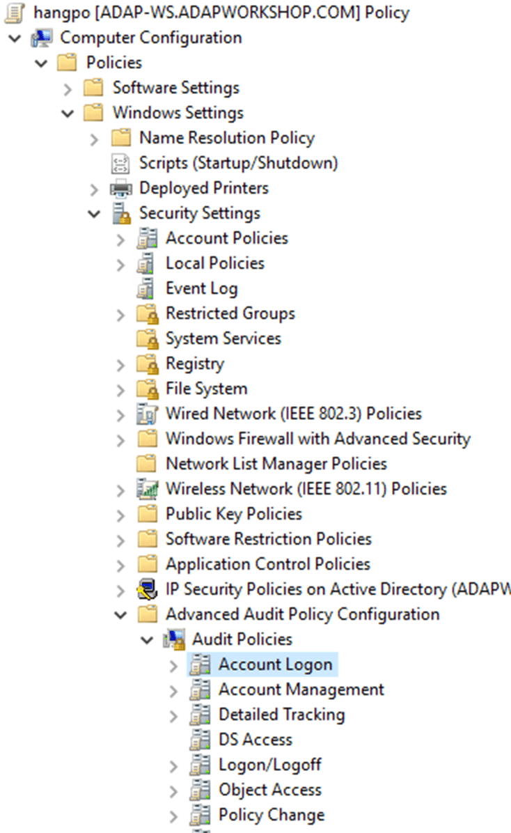 - Navigieren Sie im linken Bereich des Gruppenrichtlinien-Verwaltungs-Editors zu Computerkonfiguration → Richtlinien → Windows-Einstellungen → Sicherheitseinstellungen → Überwachungsrichtlinie.