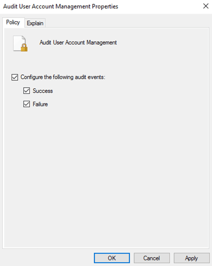 - Navigieren Sie zu Computerkonfiguration → Richtlinien → Windows-Einstellungen → Sicherheitseinstellungen → Erweiterte Überwachungsrichtlinienkonfiguration → Überwachungsrichtlinien → Kontoverwaltung → Überwachung der Benutzerkontenverwaltung, und aktivieren Sie die Kontrollkästchen neben Konfigurieren der folgenden Überwachungsereignisse, Erfolg und Fehler.