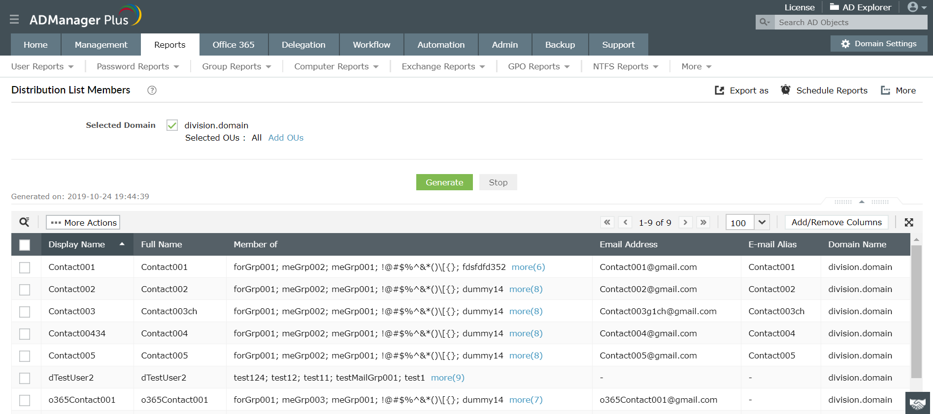 - Bericht über Verteilerlistenmitglieder: Dieser Bericht hilft Ihnen, alle Benutzer zu erkennen und zu extrahieren, die Mitglieder von mindestens einer Verteilergruppe oder Liste sind.