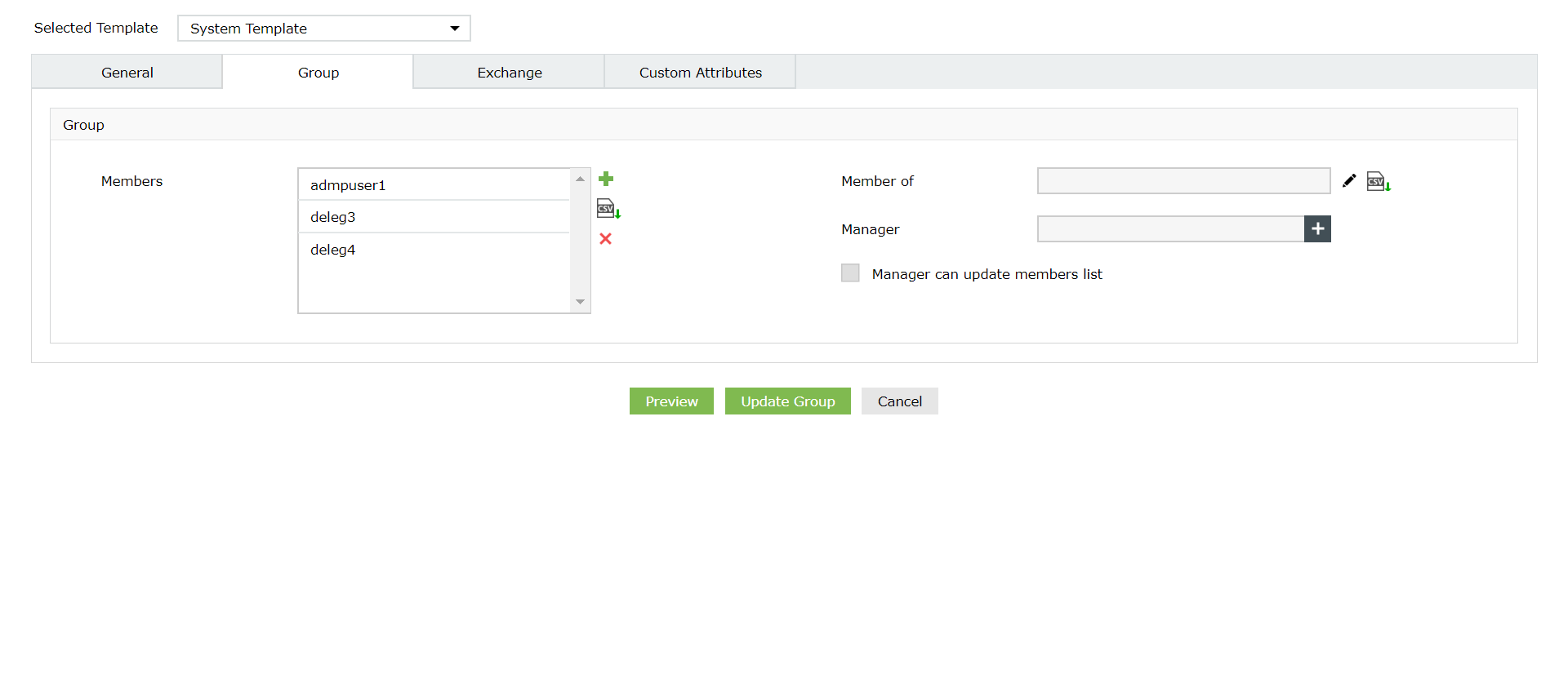 Mit ADManager Plus können Sie dies dank grafischer Oberfläche mit nur wenigen Klicks erledigen. Darüber hinaus gibt es Optionen zum gleichzeitigen Ändern der Gruppenmitgliedschaften mehrerer Benutzer – mit Vorlagen oder durch Importieren einer CSV-Datei mit geänderten Gruppenmitgliedschaftswerten.