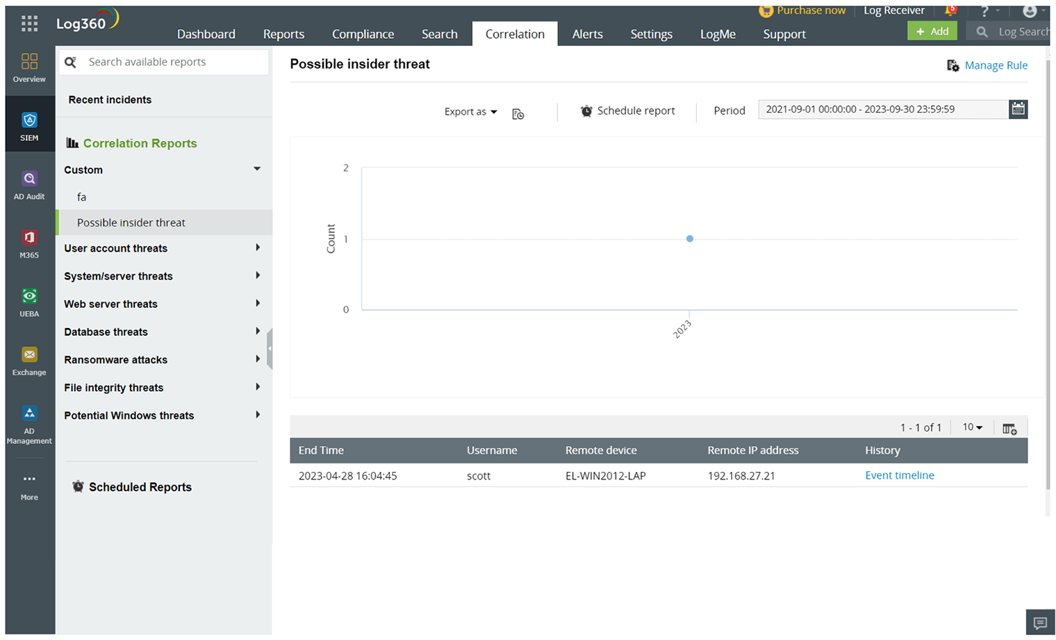 Leverage correlation reports specifically designed to help you detect prominent attack patterns.
