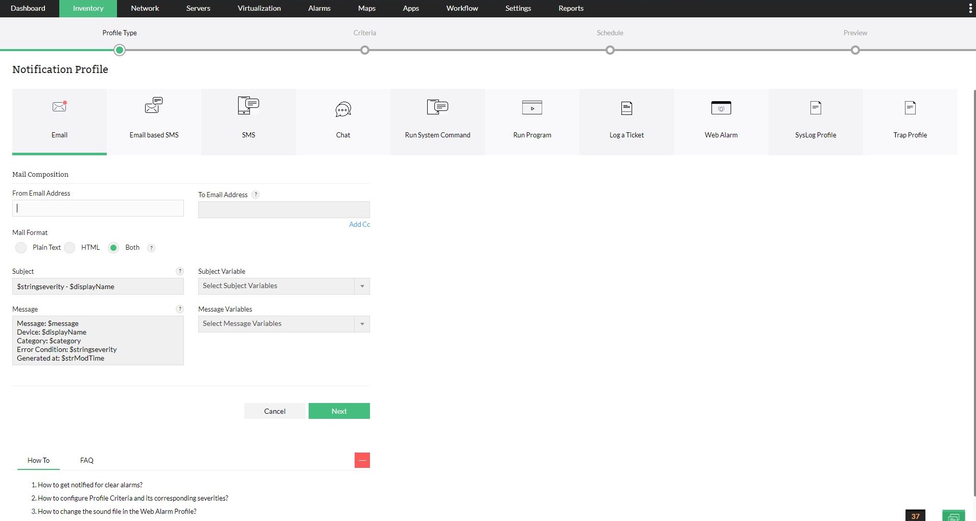 Das Netzwerk Management System von OpManager beinhaltet ein solides integriertes Fehlermanagementsystem. Sie können mit der Netzwerk Management-Software für das Leistungs-Monitoring Schwellenwerte auf mehreren Ebenen festlegen und Warnmeldungen ausgeben lassen, wenn diese Schwellenwerte über- oder unterschritten werden.