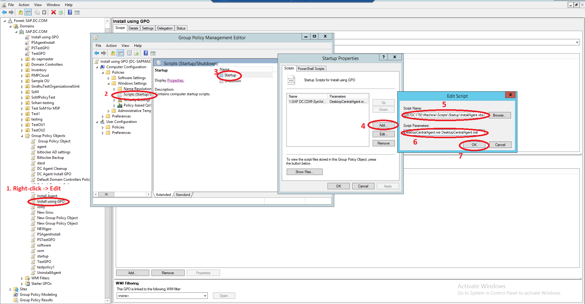 (\\Domain name\SysVol\Domain name\Policies\{ID}\Machine\Scripts\Startup)\InstallAgent.vbs