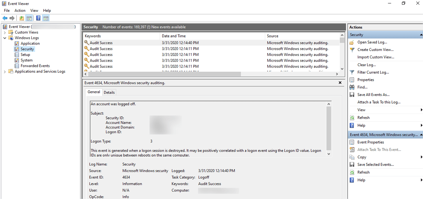 - I det nye Logbogsvindue skal du navigere til Logbog > Windows-logfiler > Sikkerhed med venstre rude.