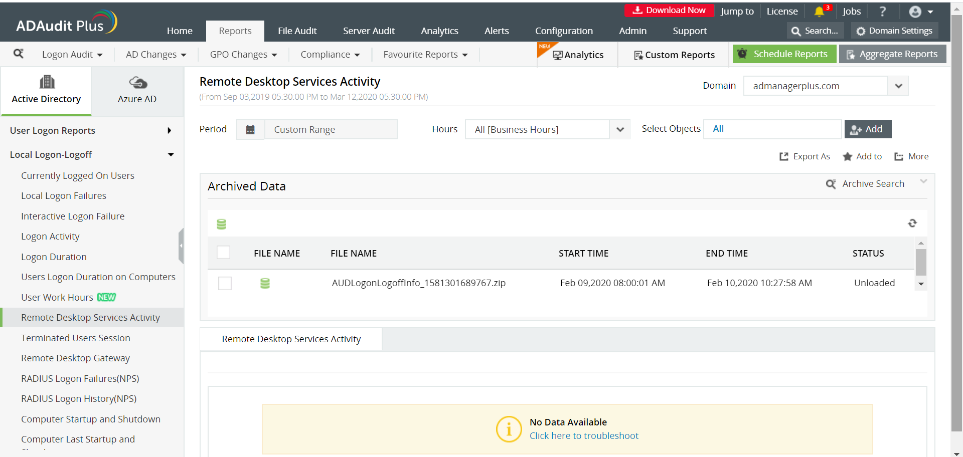 - Log ind på ADAudit Plus' webkonsol som administrator.