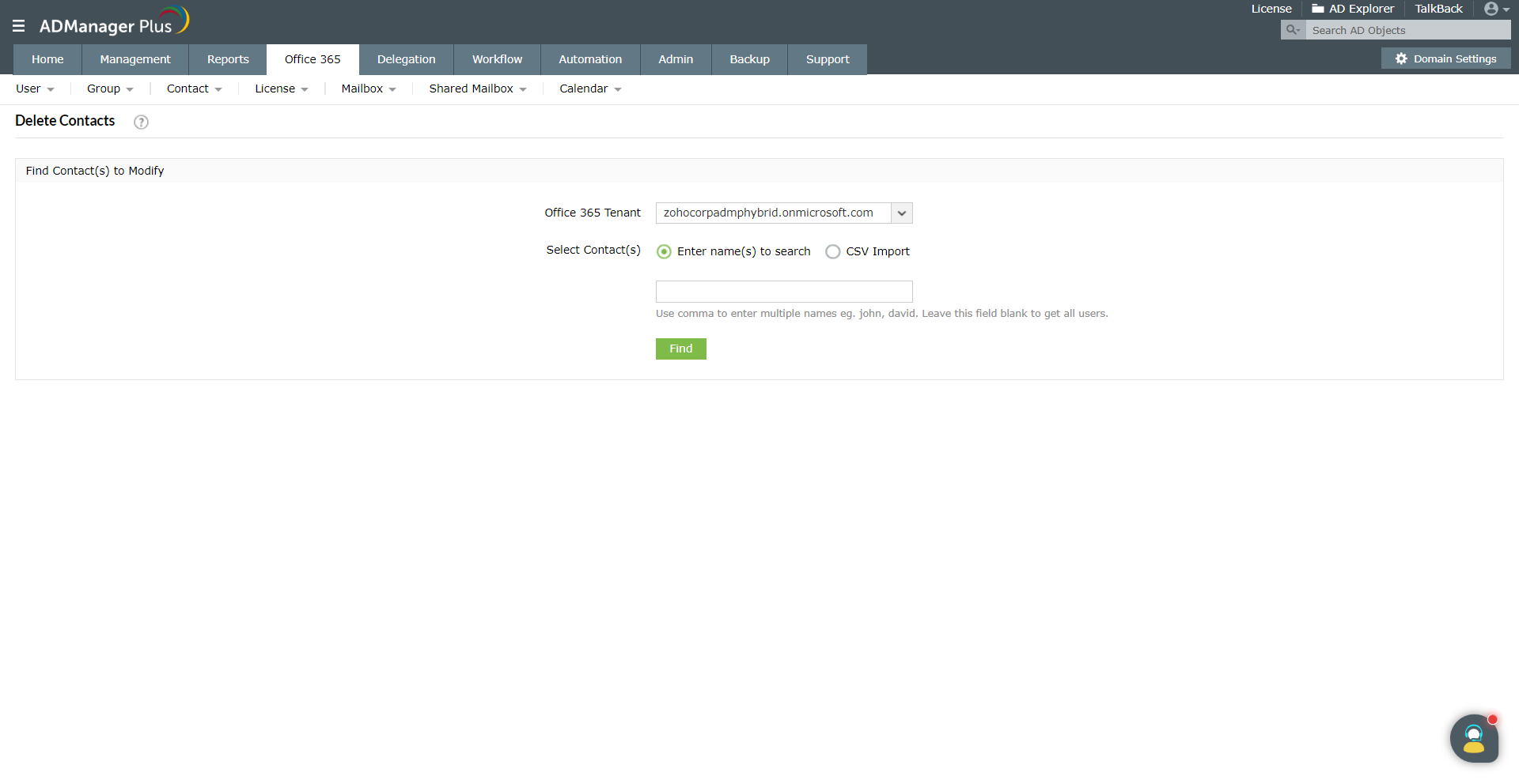 Klik her, for at se hvordan du sletter Microsoft 365-kontakter med ADManager Plus: