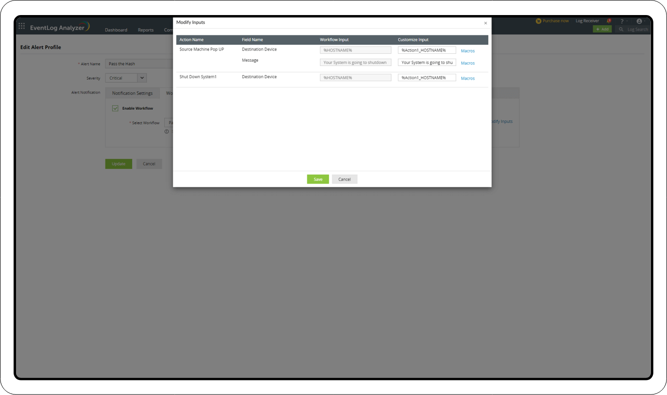 Log360 kan bekæmpe sofistikerede angreb som pass-the-hash med en række sikkerhedsfunktioner som: