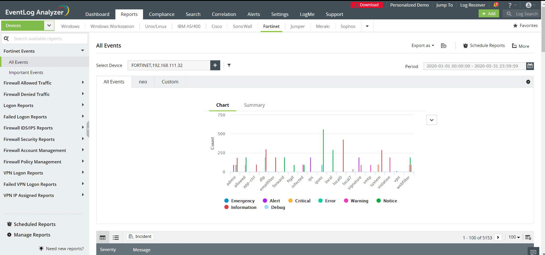 Klik her for at få mere at vide om EventLog Analyzers FortiGate-firewallrapporter.
