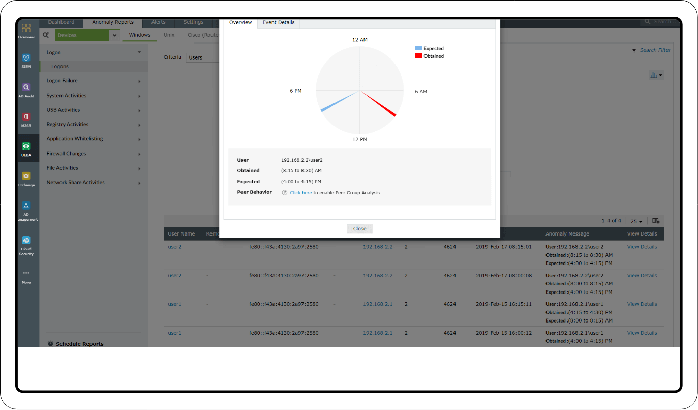 Log360 hjælper SOC'er med at implementere undersøgelsesstrategier til at håndtere sådanne vedvarende angreb. Denne SIEM-løsning tilbyder nyttige funktioner som følgende