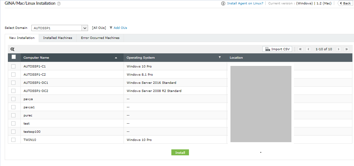 - Klik på Tilføj OU'er for at vælge de OU'er, som logon-medarbejderen kan installeres på. Klik på Hent computere.