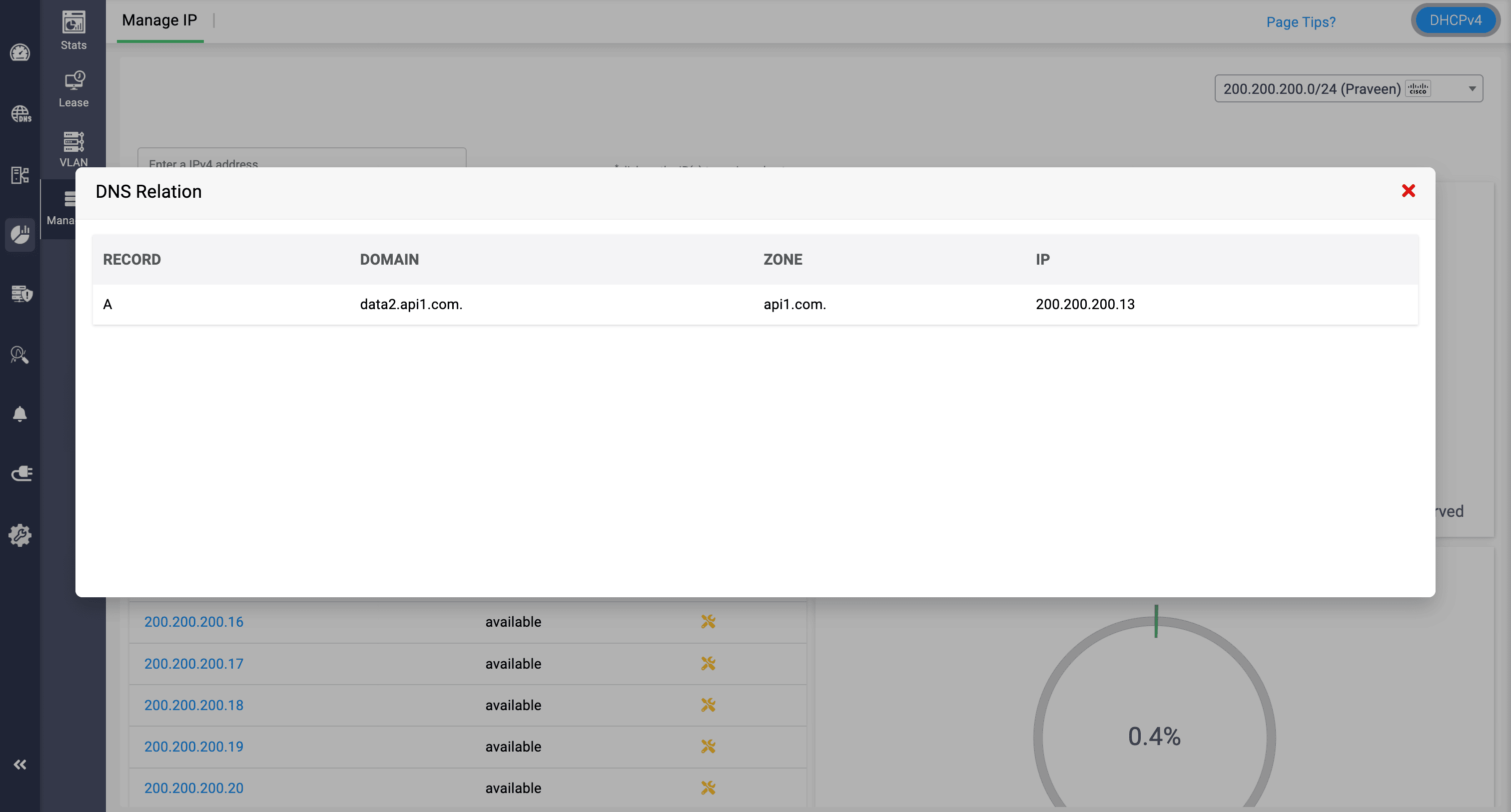 Figure 3.6: See which DNS records depend on each Cisco DHCP IP—instantly map an address to its A record, domain, and zone.