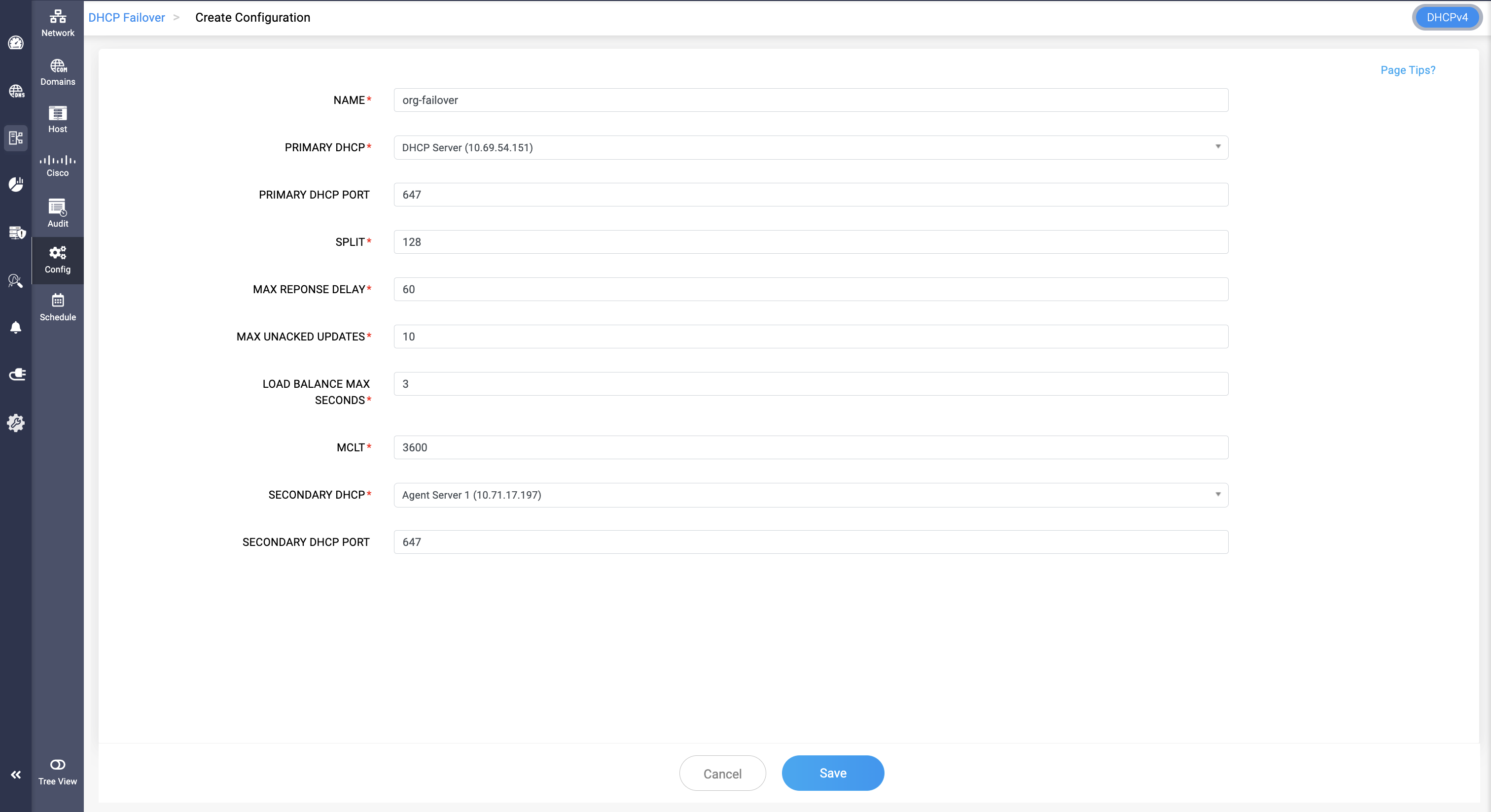 Click Save to bring the failover configurations into effect. Select the failover server you create while enabling failover for each scope you define in DDI Central.