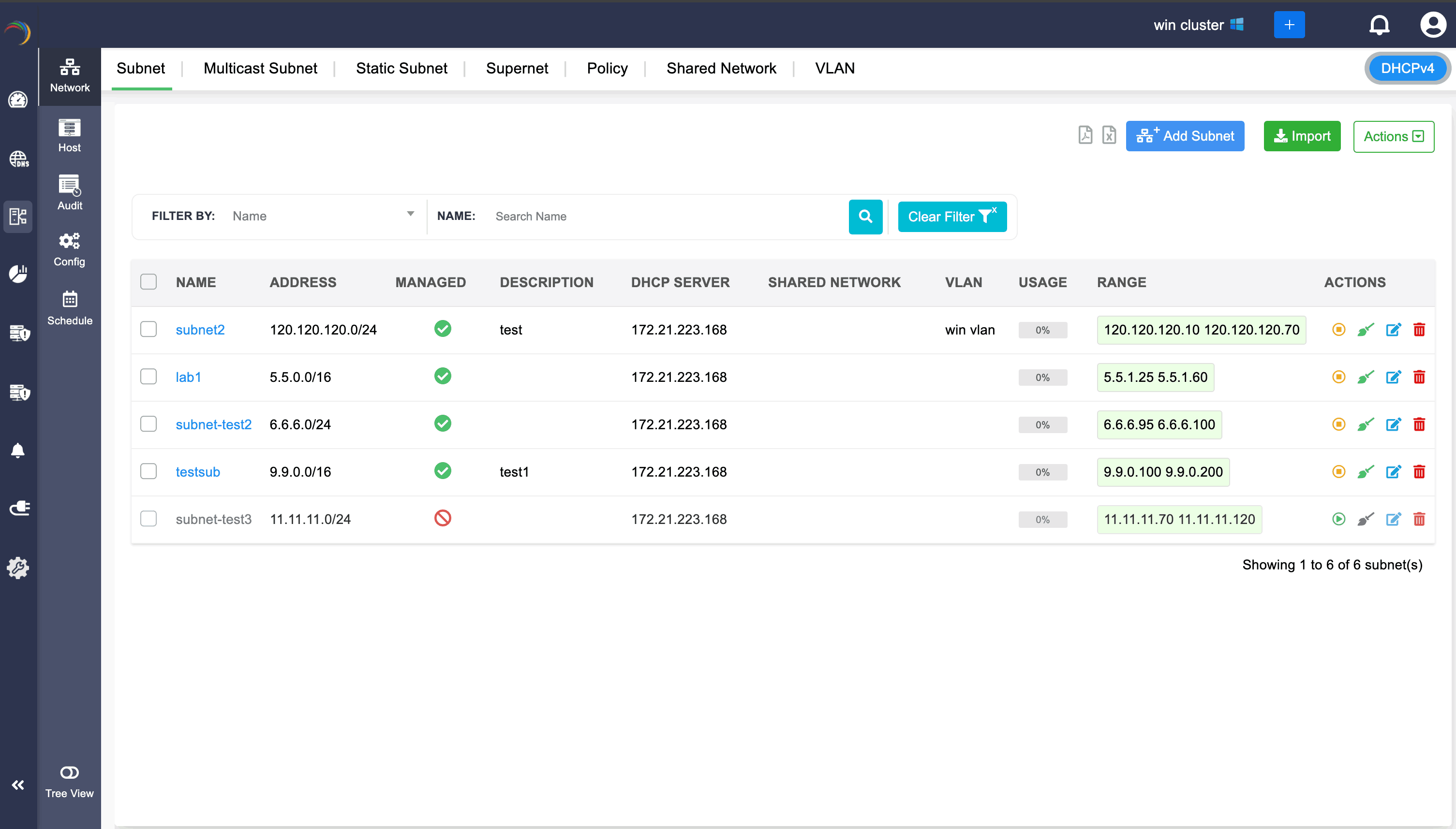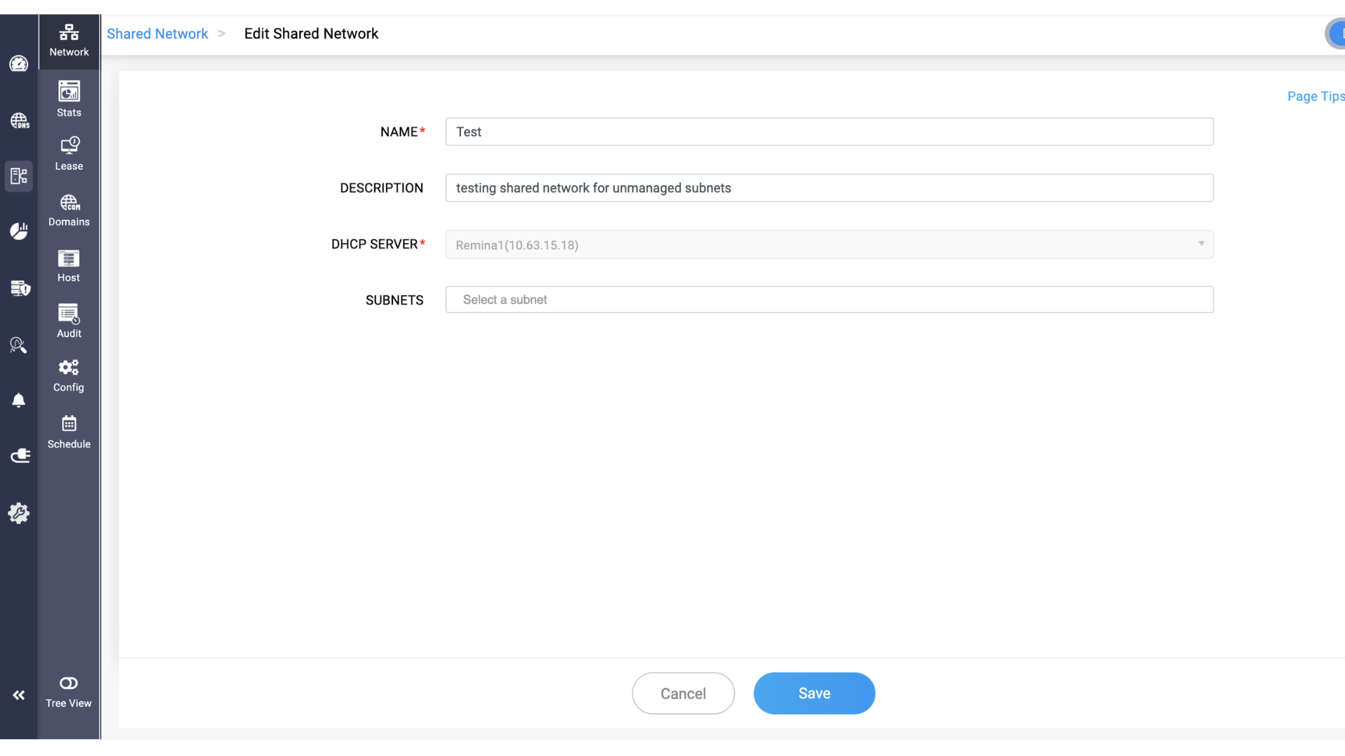 When an unmanaged DHCP subnets are associated with a specific shared network, the subnets will be displayed within the shared network page for reference.