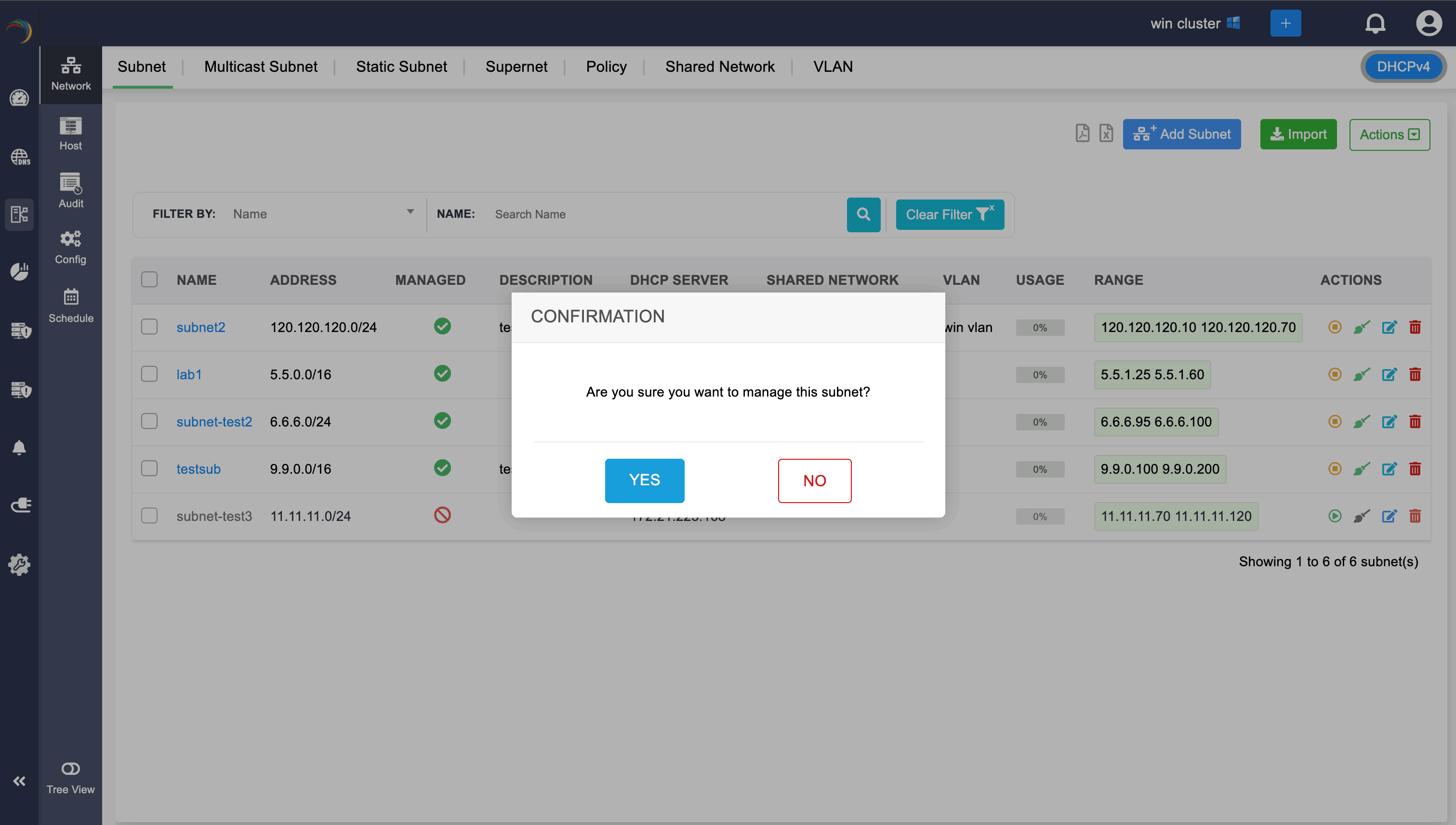 After unmanaging the subnet, network admin cannot edit or configure the subnet. They can only be edited or configured when the subnet gets changed back to managed state by clicking on the green Manage icon.