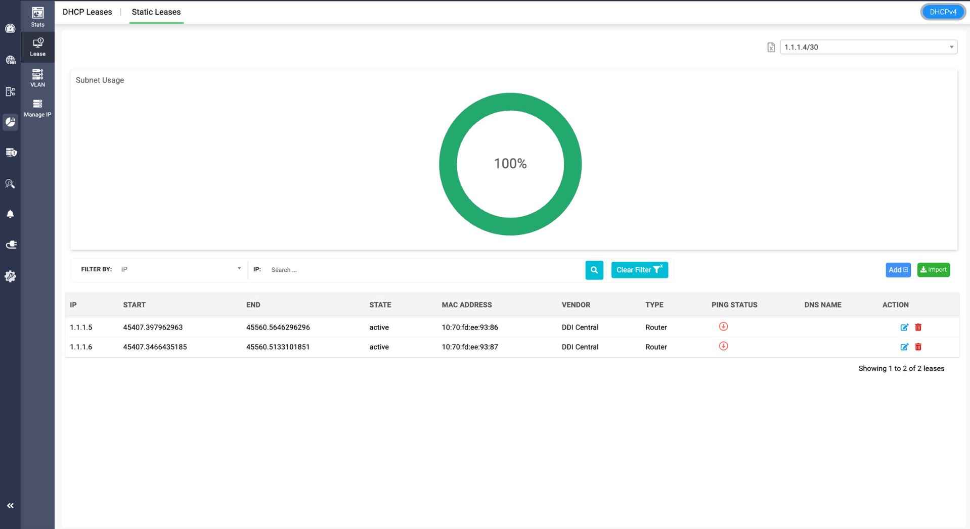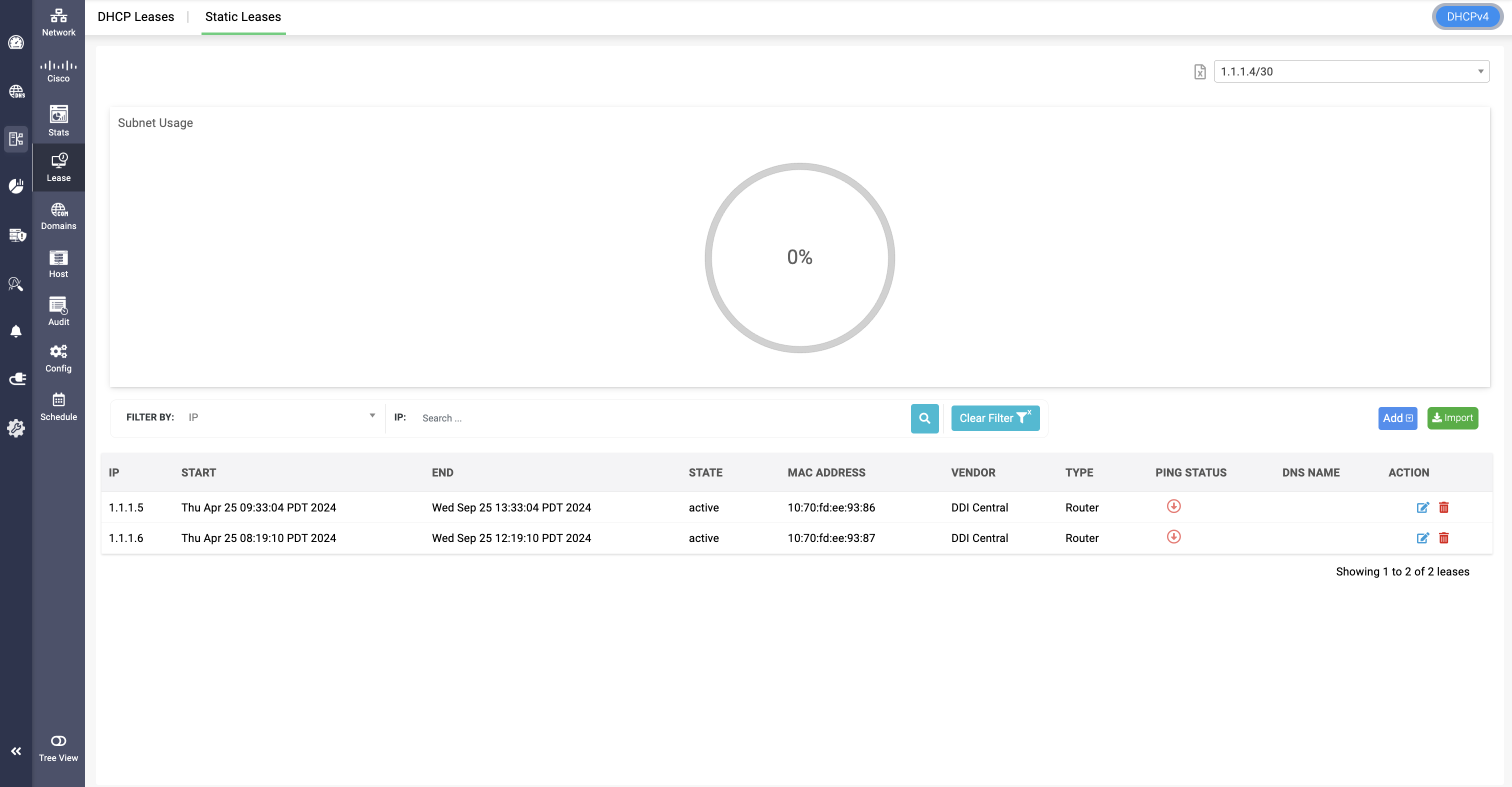 DDI Central enables administrators to import IPv4/IPv6 subnets, multicast subnets, and hosts/DHCP reservations in bulk using CSV files. This feature simplifies large-scale network configuration and reduces manual entry errors.