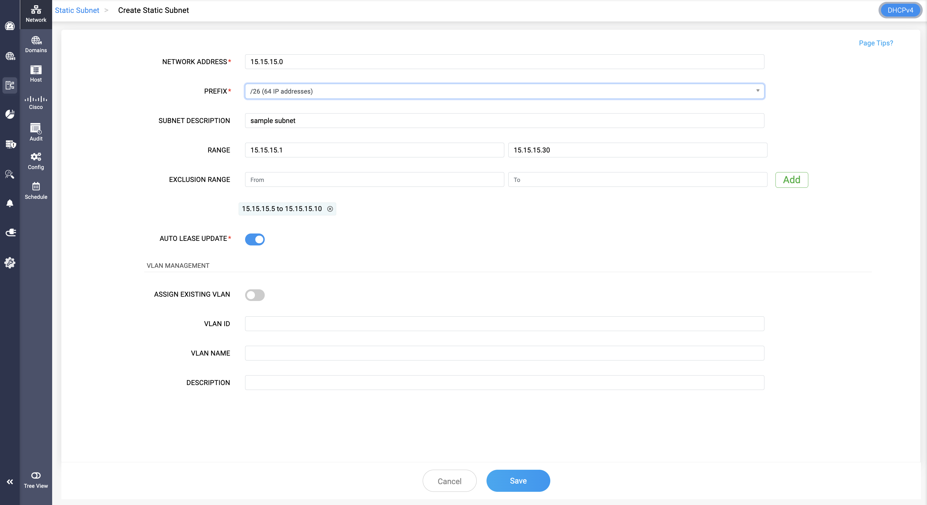 Once the details are complete, clicking the Save button will create the new subnet with the specified configuration.