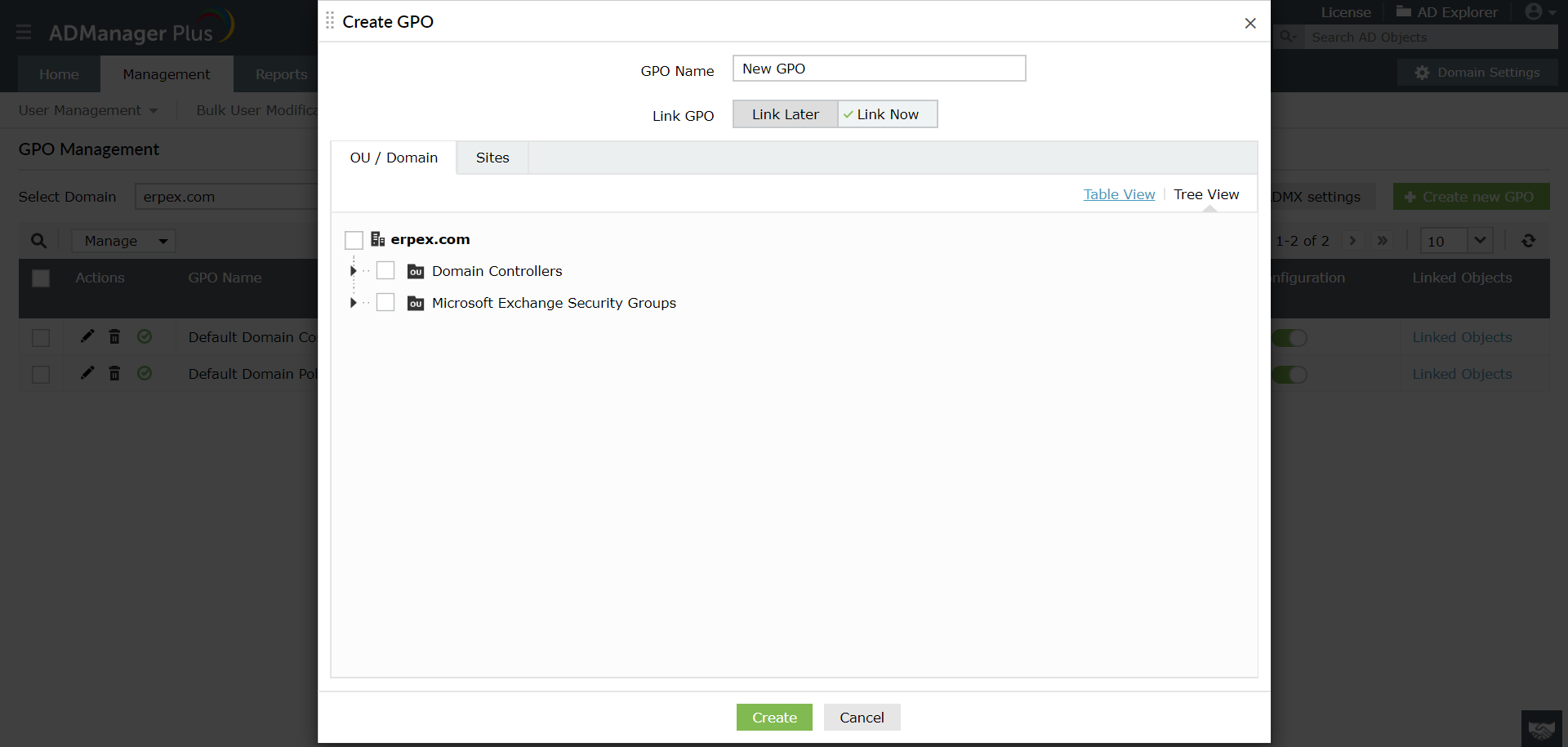 ADManager Plus es un software de administración y generación de informes de Active Directory basado en web que le ayuda a los administradores a administrar los objetos de directiva de grupo en varios dominios, con solo unos pocos clics del mouse y acciones basadas en UI. Este software también proporciona informes de directiva de grupo (GPO) predefinidos para obtener información relacionada con la directiva de grupo rápidamente. Esta herramienta de administración de Active Directory también ayuda con la administración y generación de informes en Microsoft Exchange Server.