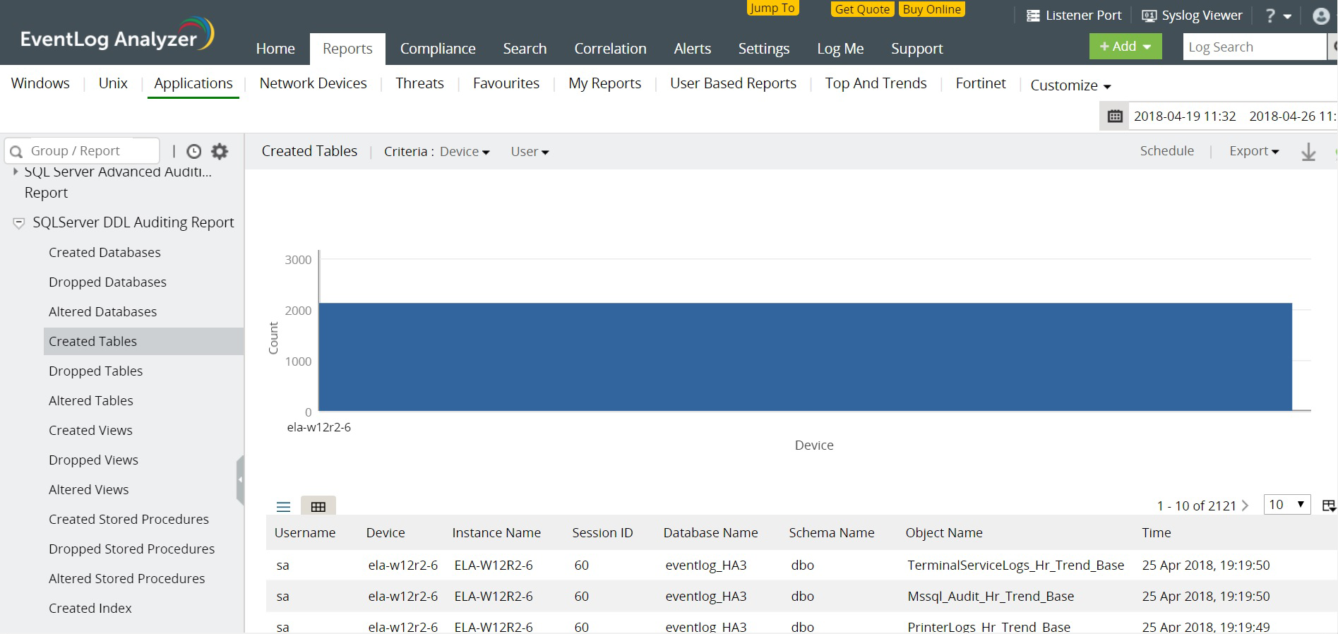 Auditoría de bases de datos MS SQL Server con EventLog Analyzer