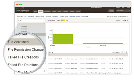 EventLog Analyzer ofrece funciones de administración de logs, monitoreo de integridad de archivos y capacidades de correlación de eventos en tiempo real en una sola consola, que ayudan a satisfacer las necesidades de SIEM, combatir ataques de seguridad y evitar las filtraciones de datos.