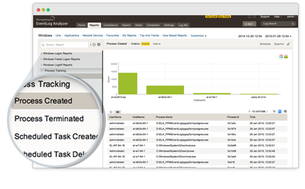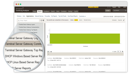 Protéjase de las amenazas de seguridad y el acceso no autorizado a datos críticos en su servidor auditando las actividades del servidor con los informes de EventLog Analyzer. La solución le ayuda a monitorear y auditar las actividades que se producen en el servidor de terminales y en los servidores DHCP de Windows/Linux, en los servidores FTP IIS, IIS y en los servidores web de Apache.